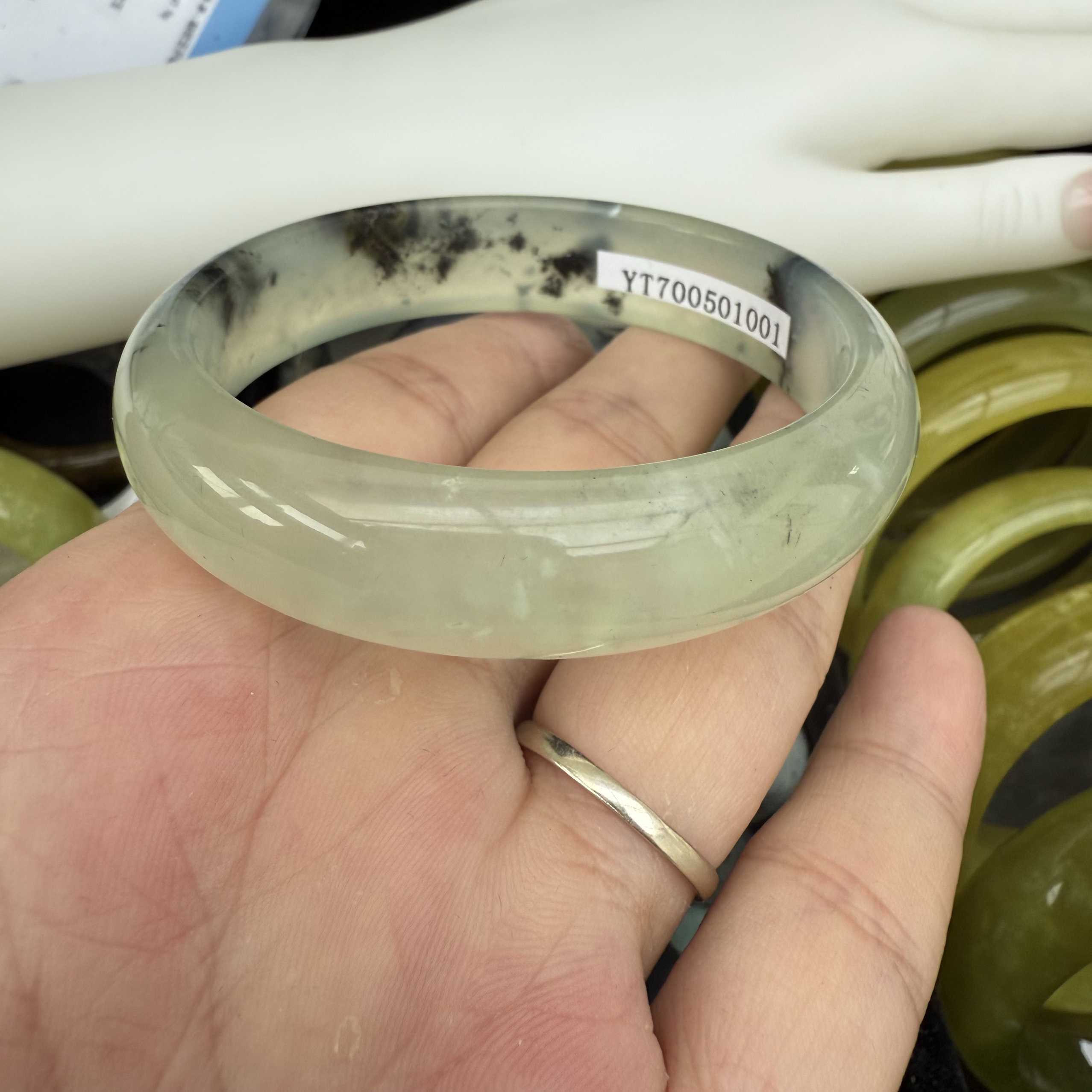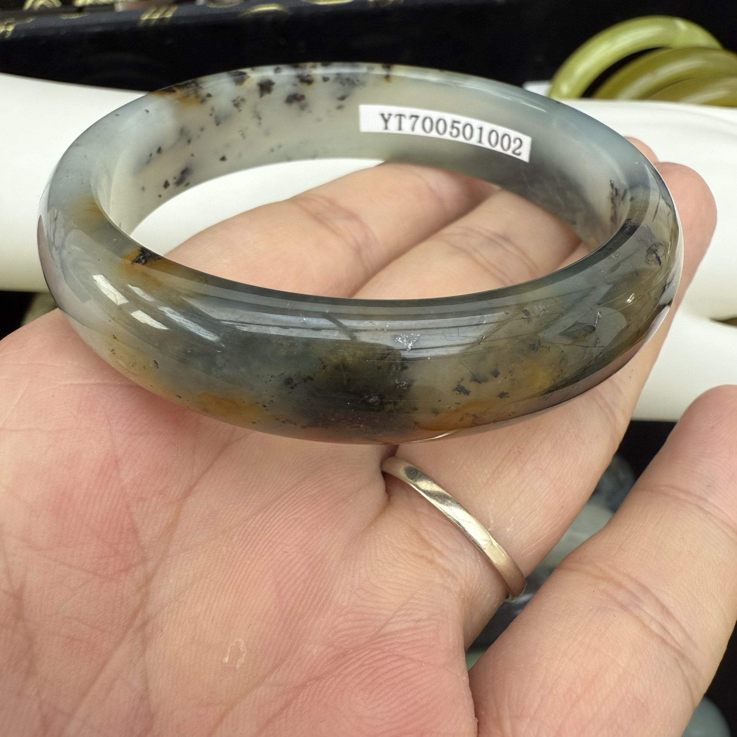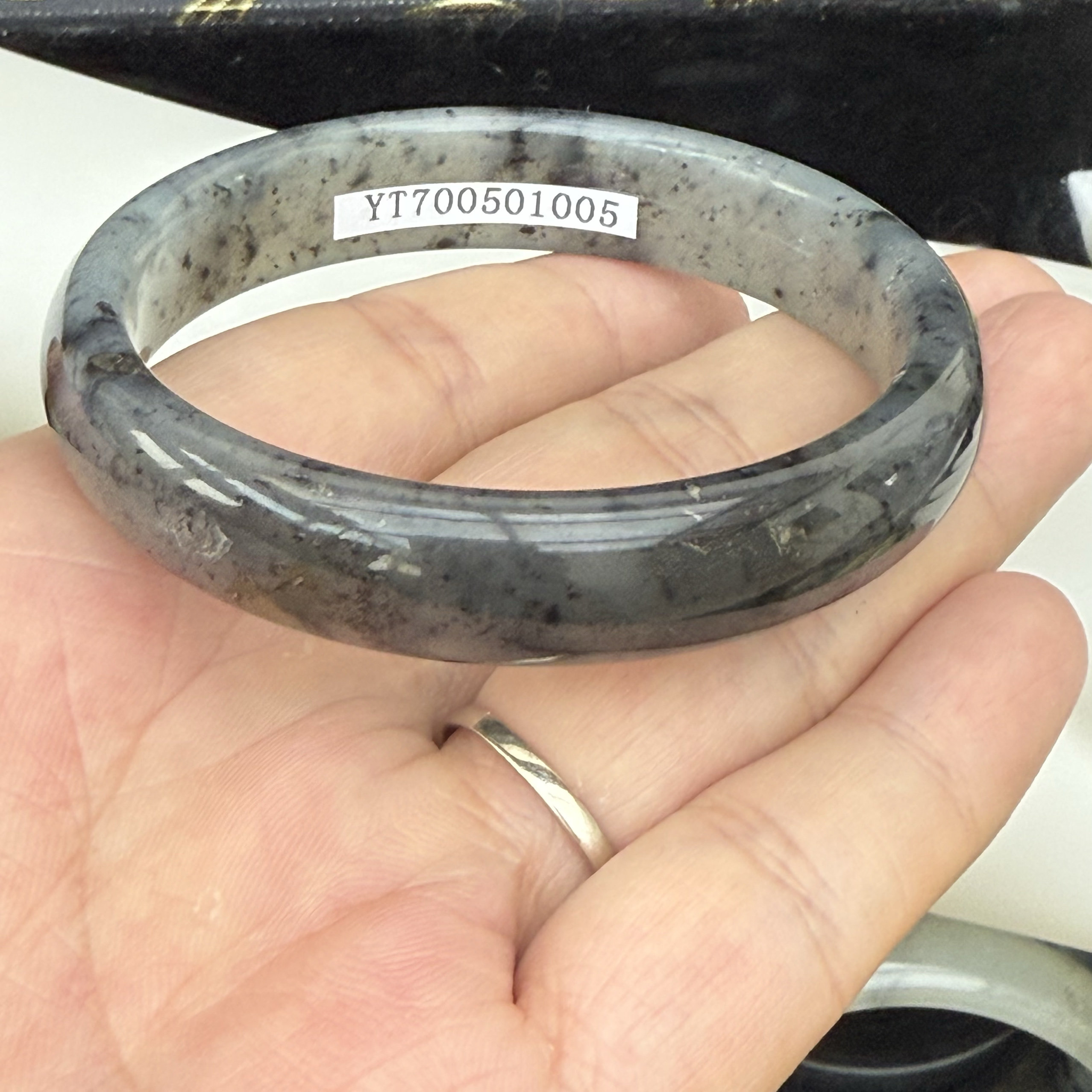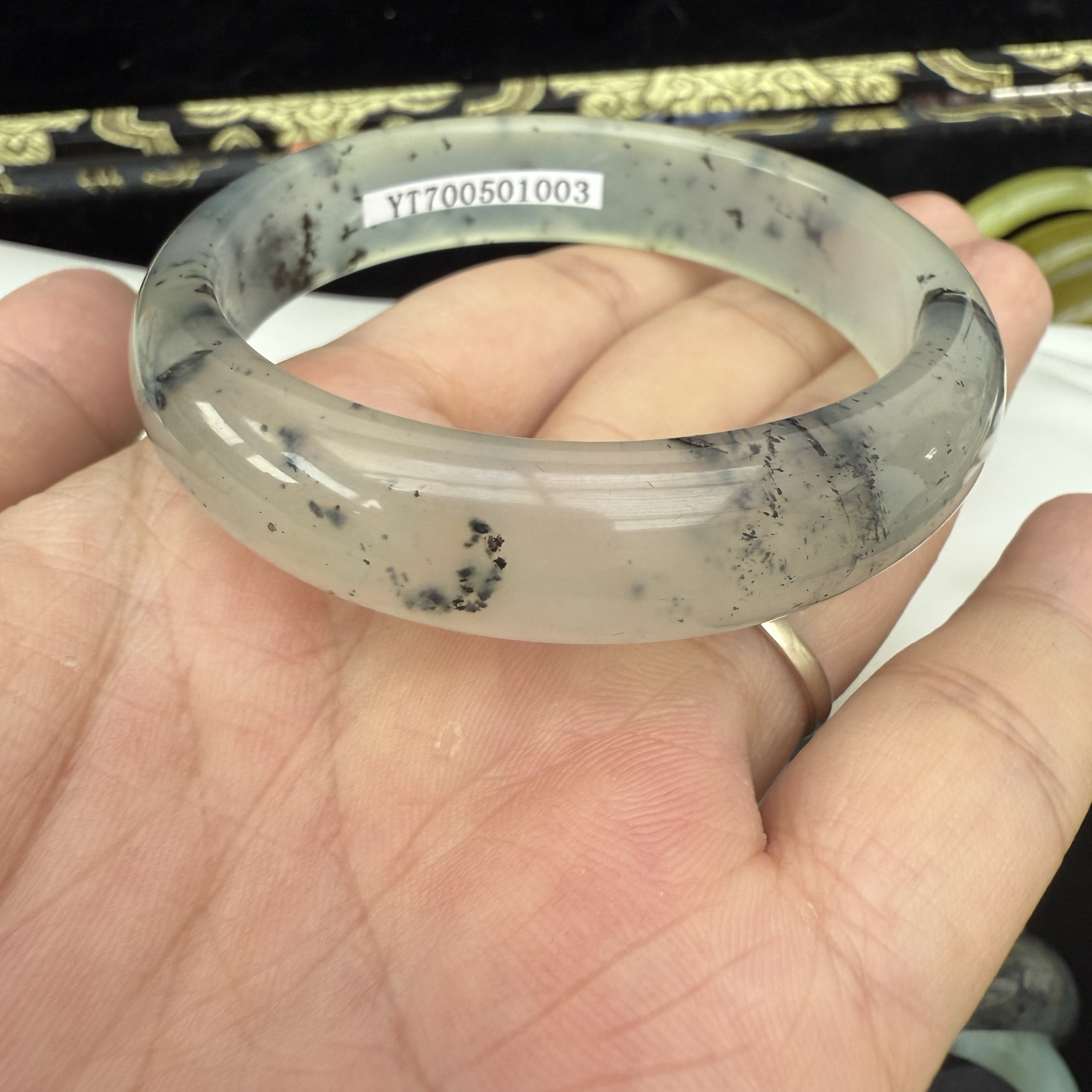 天然岫岩玉水墨飘花青花手镯56圈口女款玉石镯子正品一物一图送礼