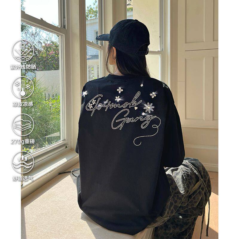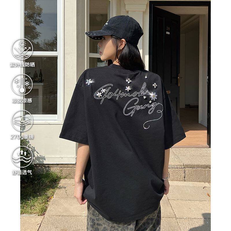 404MOB立体手工钉钻花卉潮牌短袖T恤男女2026夏美式宽松防晒凉感t