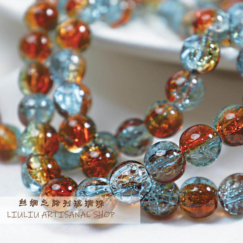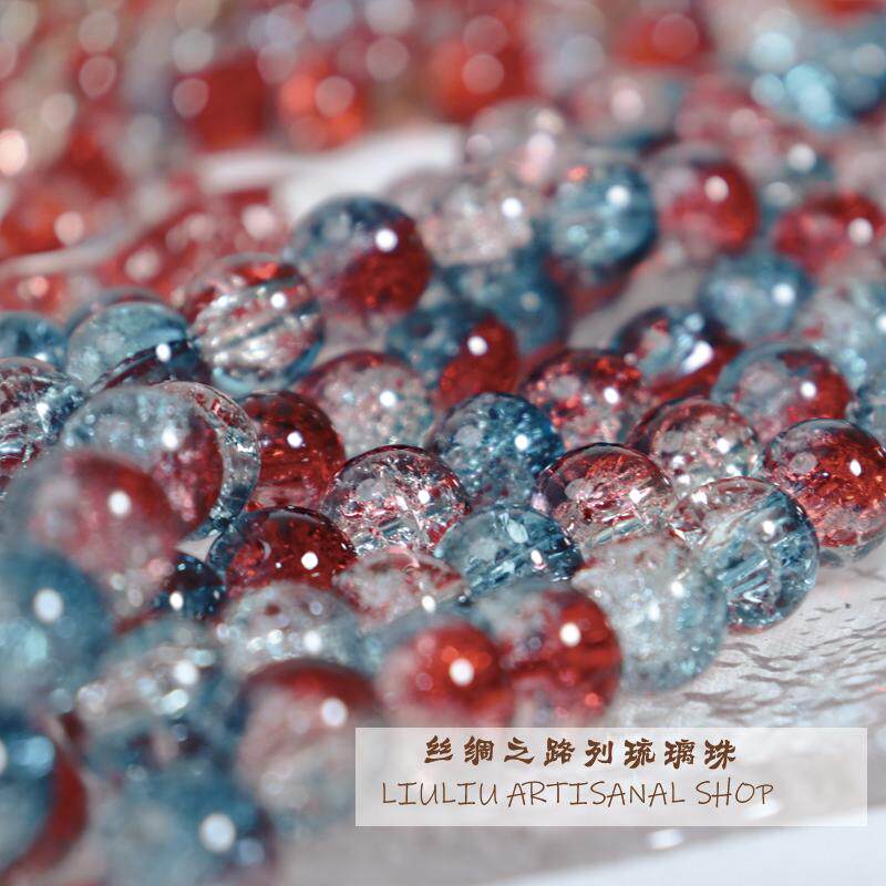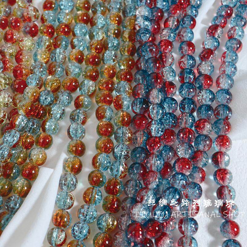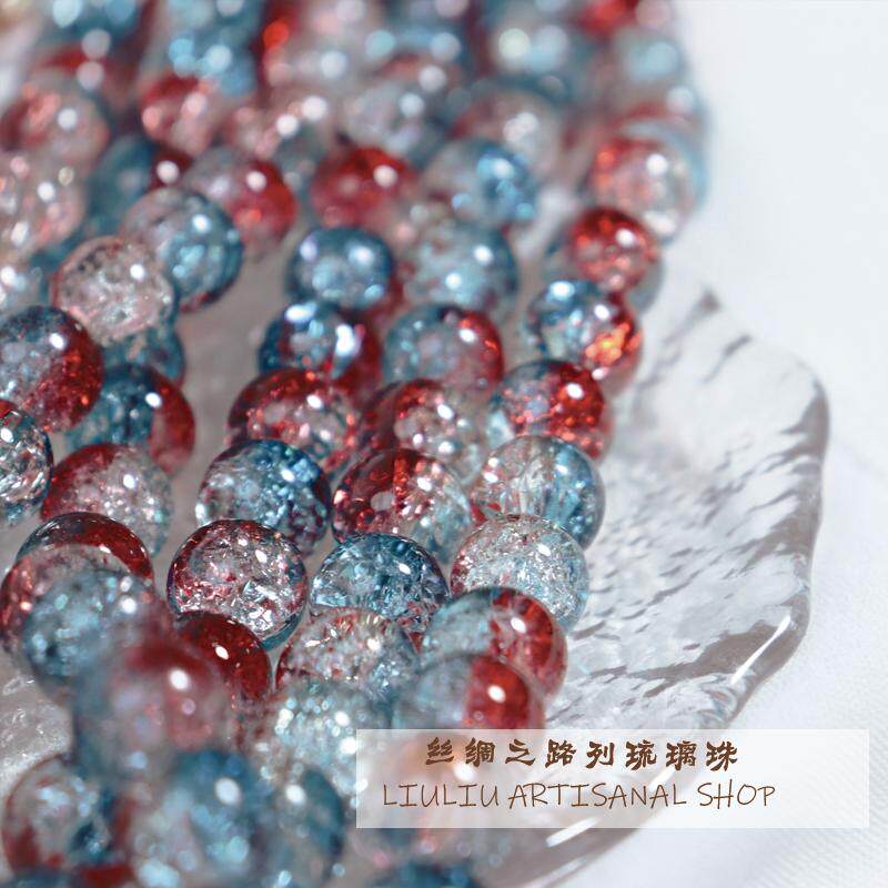 10mm珠子散珠爆花琉璃珠50颗装碎花玻璃圆珠手串手工diy饰品配件