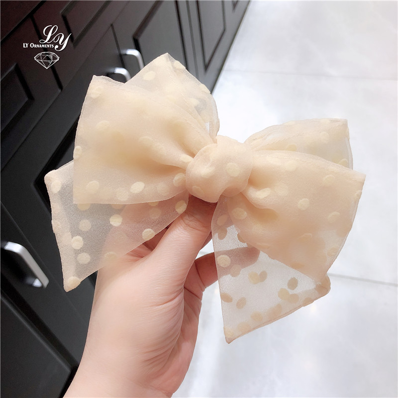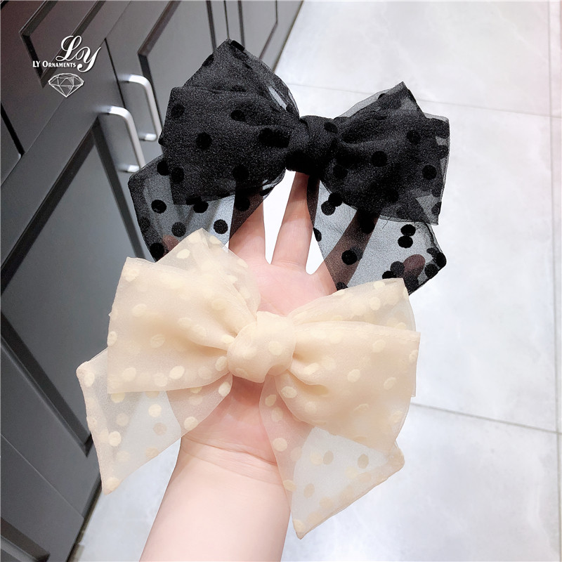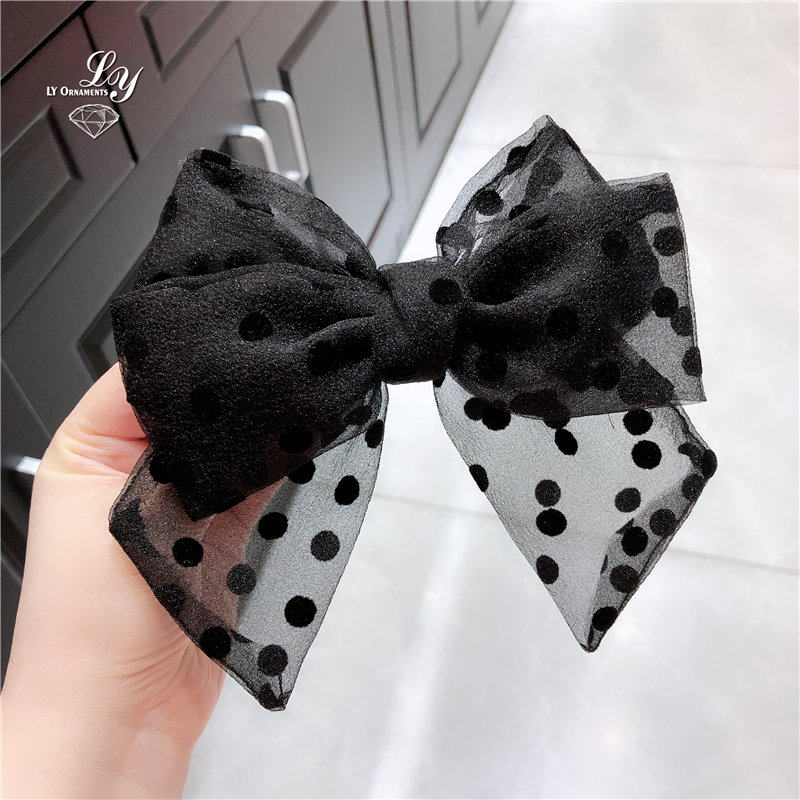 韩国东大门波点纱网蝴蝶结顶夹横夹时尚可爱发饰学院风少女弹簧夹