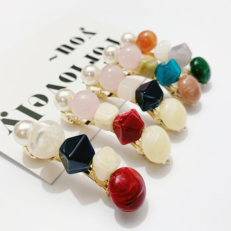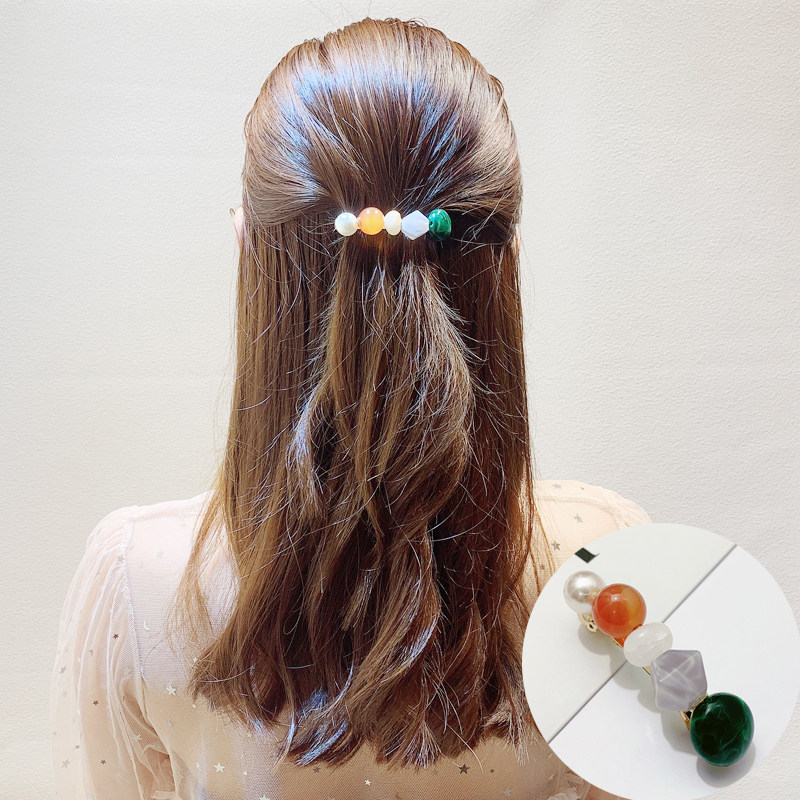 韩国发夹女手工珠子顶夹弹簧夹发卡百搭后脑勺夹子刘海夹边夹发饰