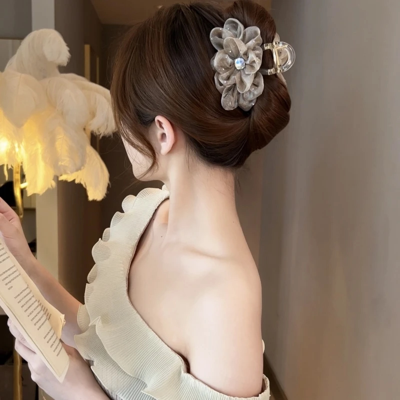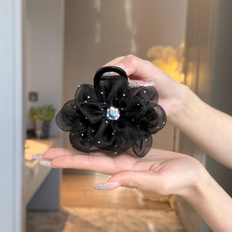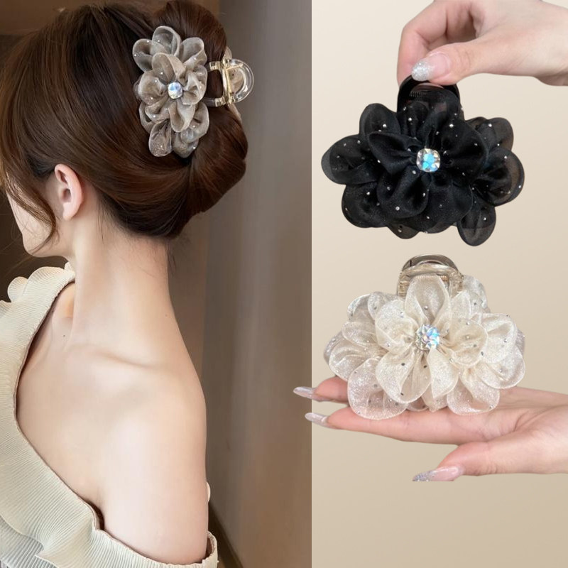 网纱花朵抓夹发饰优雅百搭韩版鲨鱼夹泡泡发夹2025新款中号夹头饰