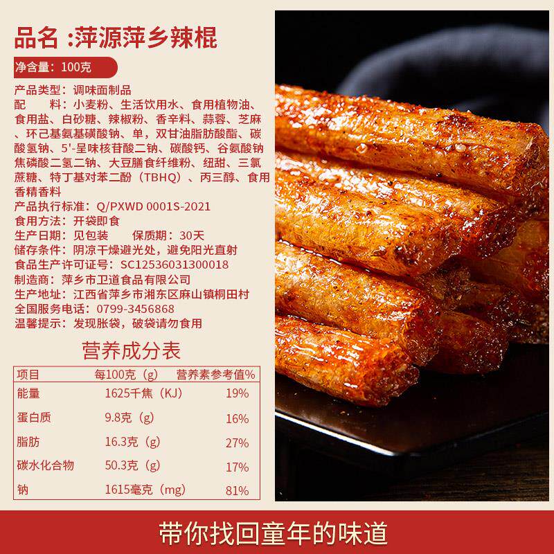 新日期江西特产萍乡辣条辣棍麻辣儿时怀旧小零食8090后老式辣棒手