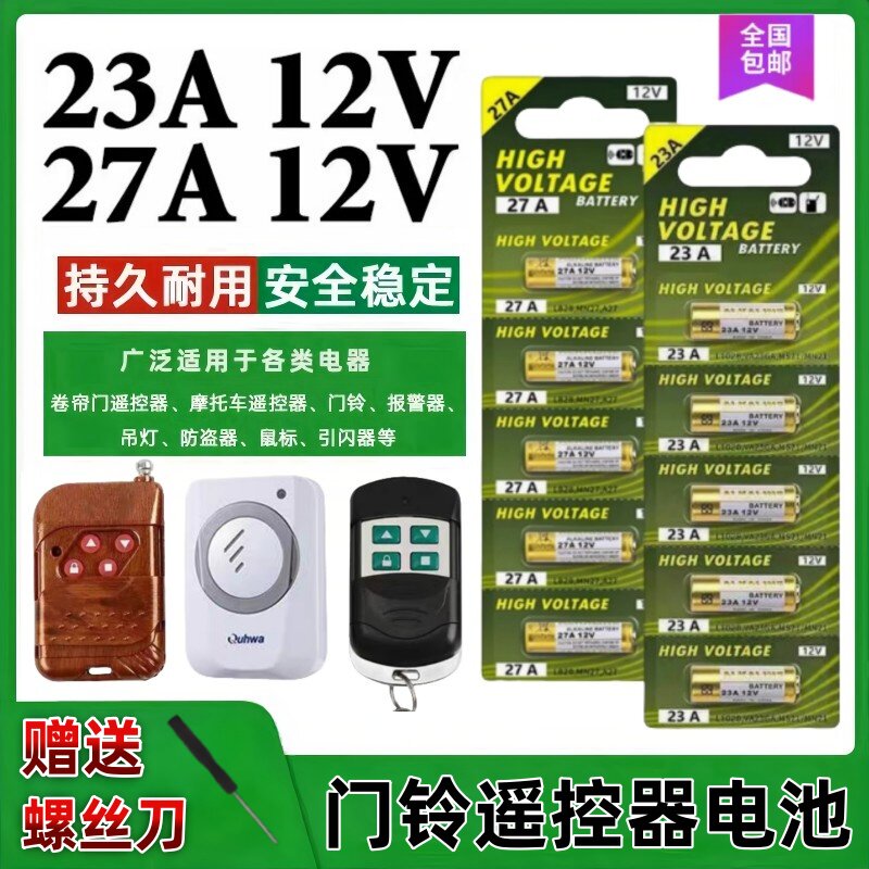 23A12V电池27A12V吊灯门铃遥控器防盗引闪器风扇车库闸卷帘门通用