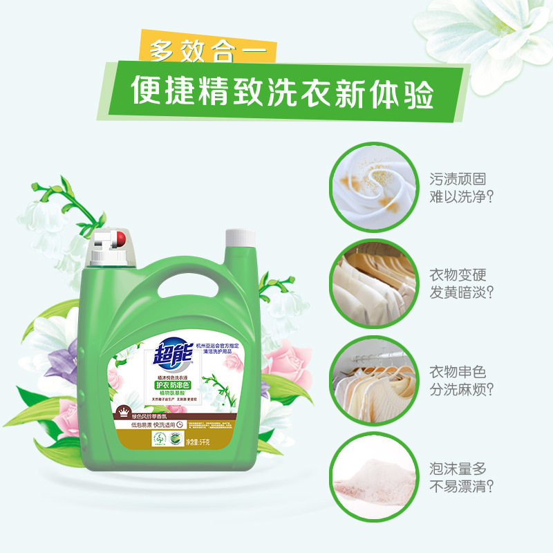 超能植沐悦色洗衣液5kg*10斤护衣防串色持久留香家用实惠正品整箱