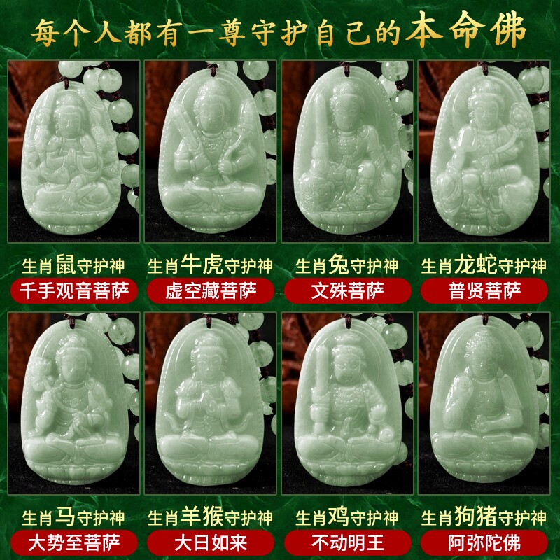 天然翡翠玉观音吊坠生肖本命佛守护神玉坠文殊虚空藏普贤菩萨挂件