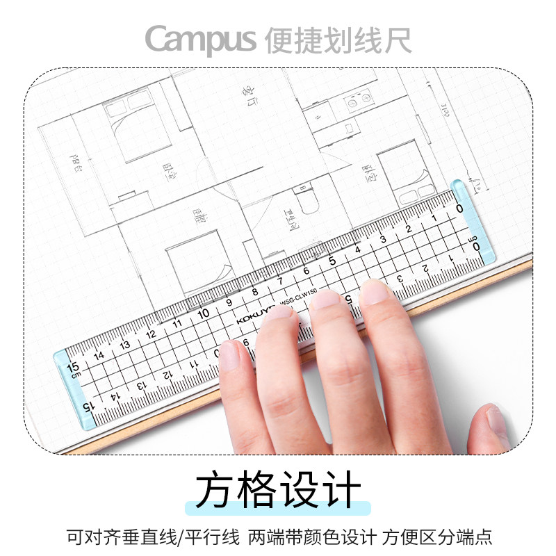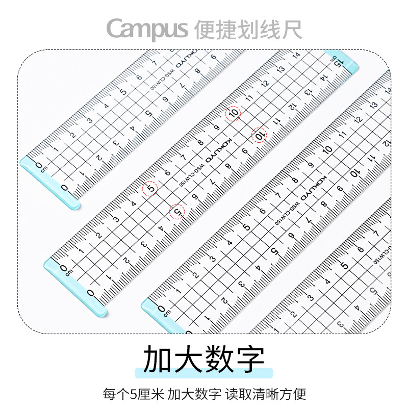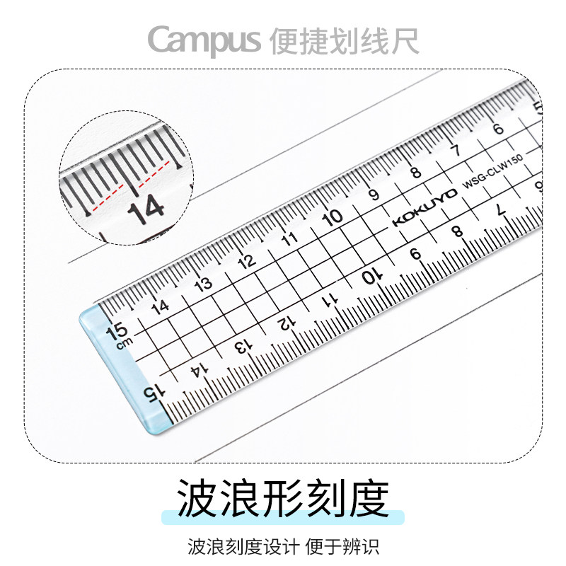 日本kokuyo国誉Campus划线尺小学生透明亚克力尺子15cm数学测量尺