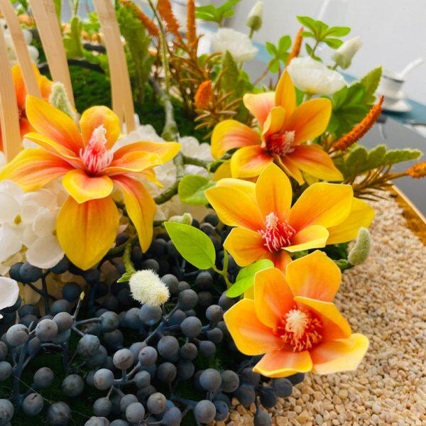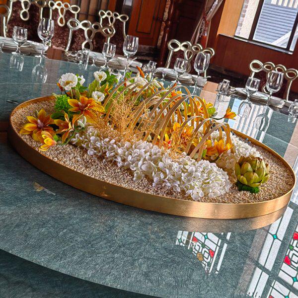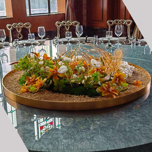 新款大圆桌中间摆花新中式餐桌摆件酒店餐桌桌面中间转盘装饰花艺