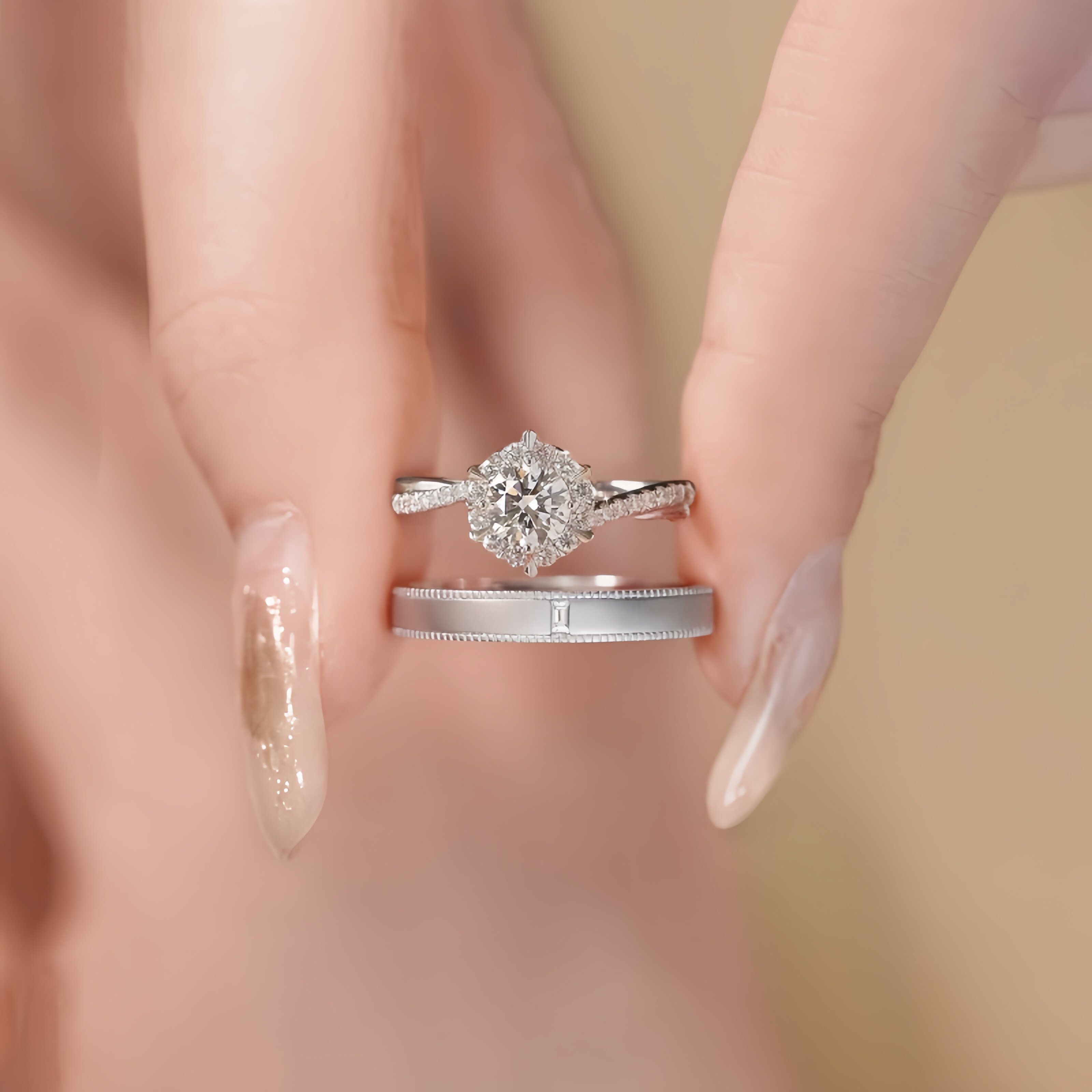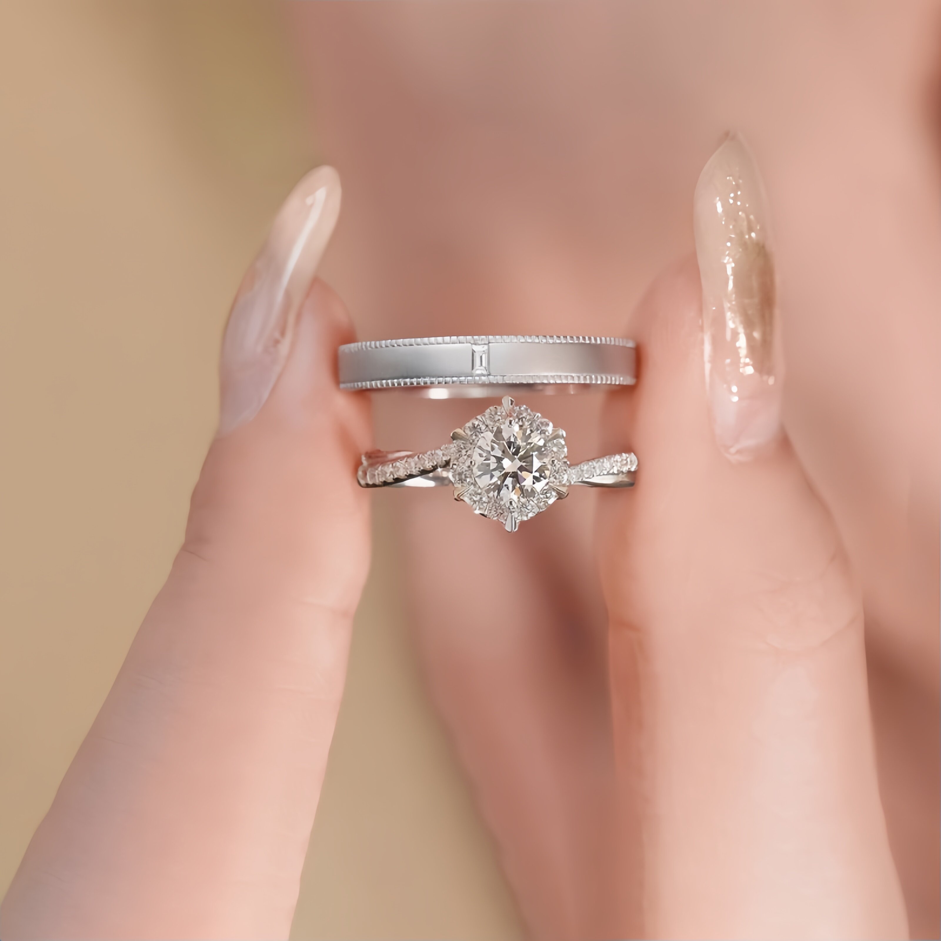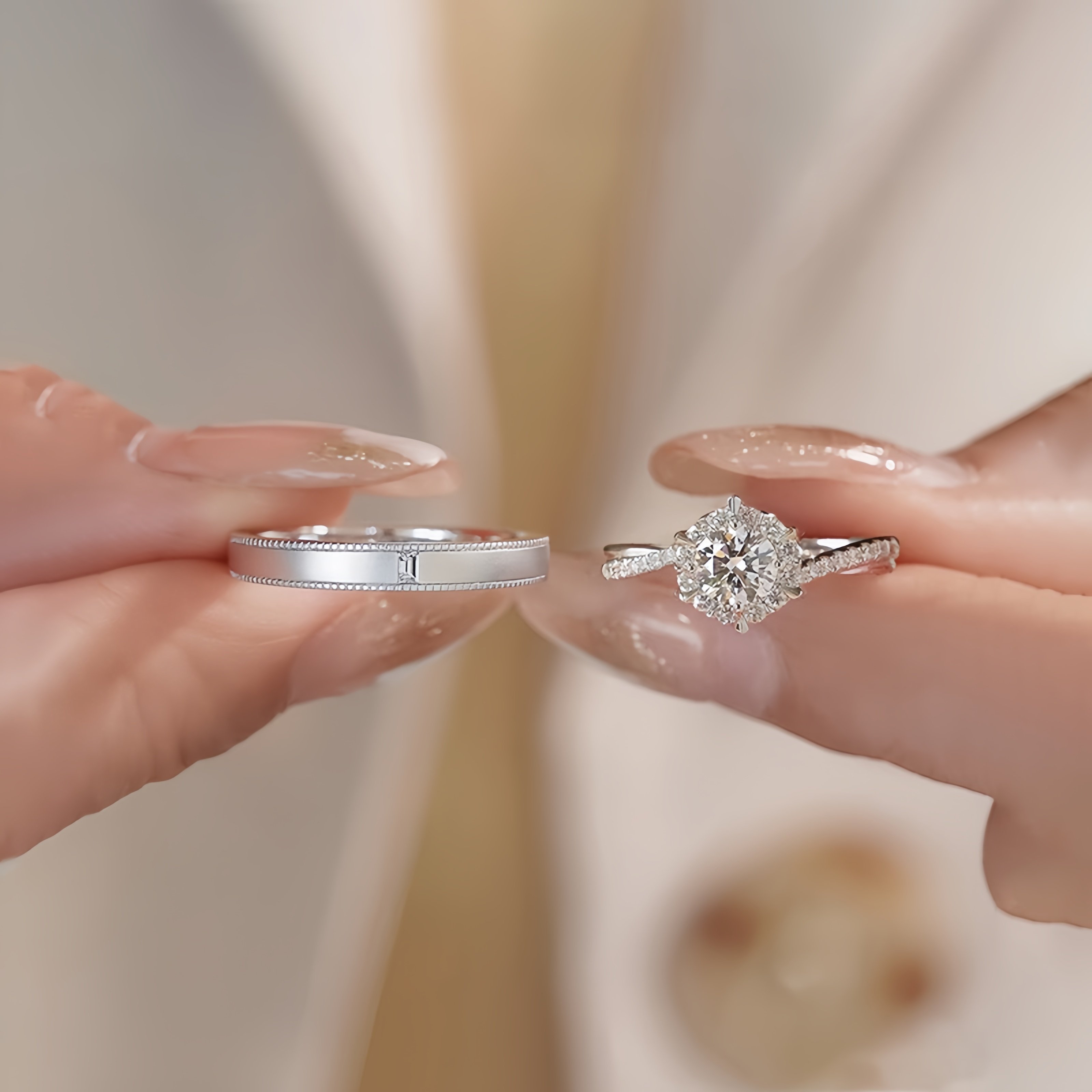 纯银莫桑石钻戒女星织情侣戒指1克拉一对仿真钻求婚结婚女友礼物
