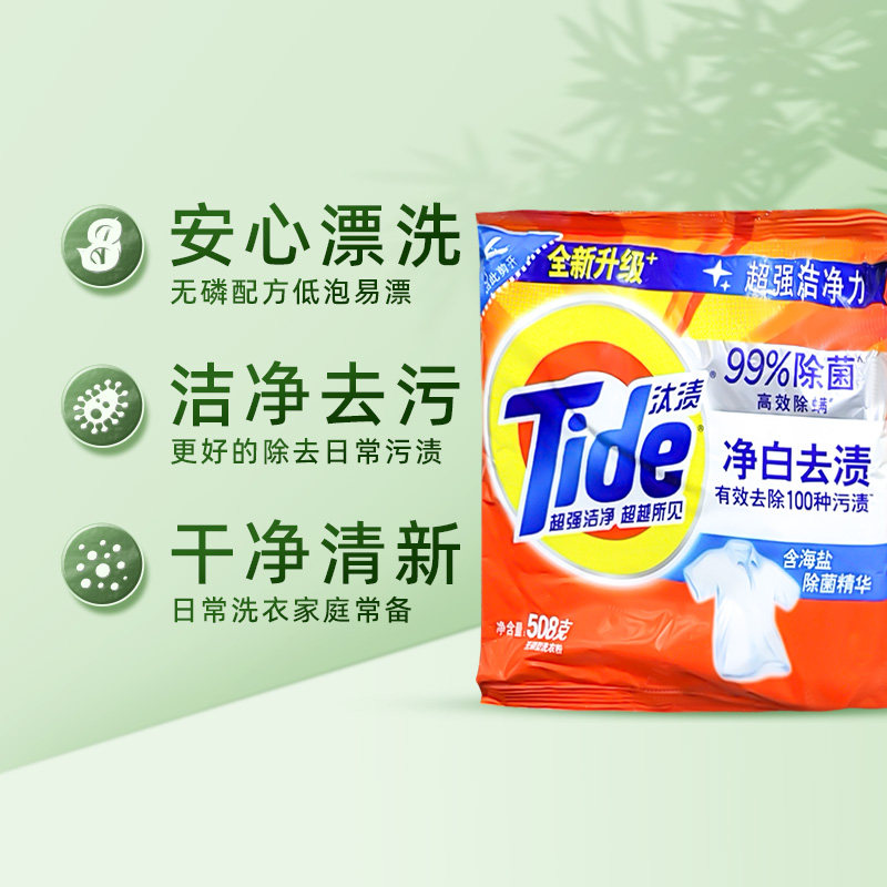 汰渍洗衣粉净白去渍 508g*2袋 强效去异味香味持久洗衣服去渍除菌