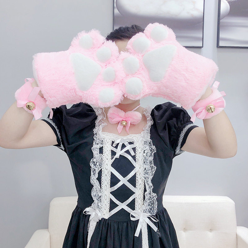 毛绒lolita猫爪手套cosplay卡通手套儿童表演猫掌道具