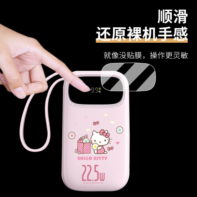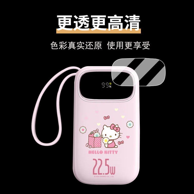 适用于倍思三丽鸥联名充电宝贴膜25款Q电3自带线快充保护膜22.5W移动电源屏幕膜1000毫安非钢化膜2万毫安防刮