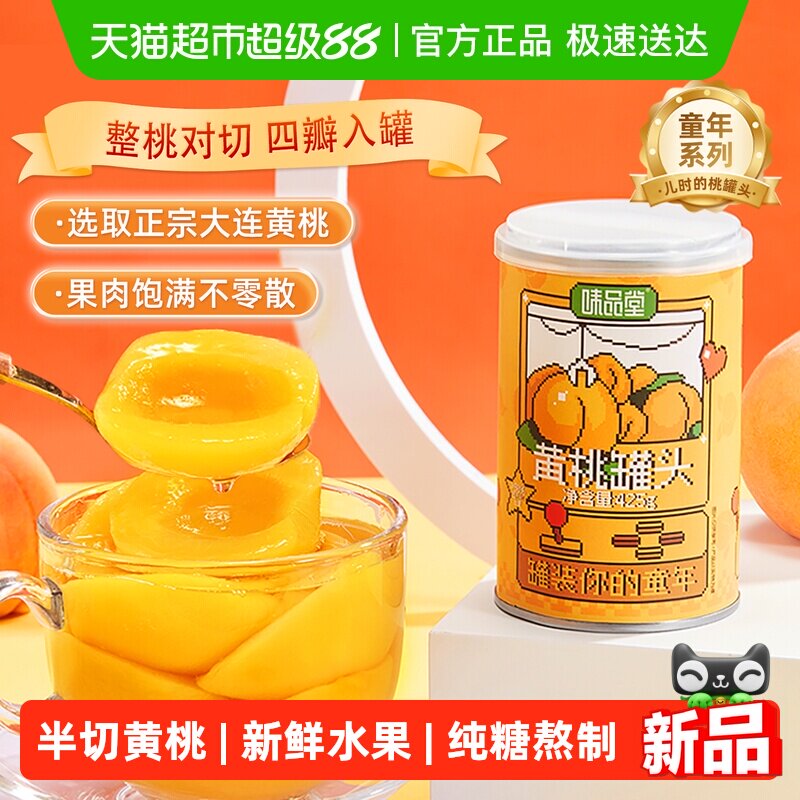 味品堂糖水黄桃水果罐头425g罐装水果捞儿童即食零食休闲小吃怀旧