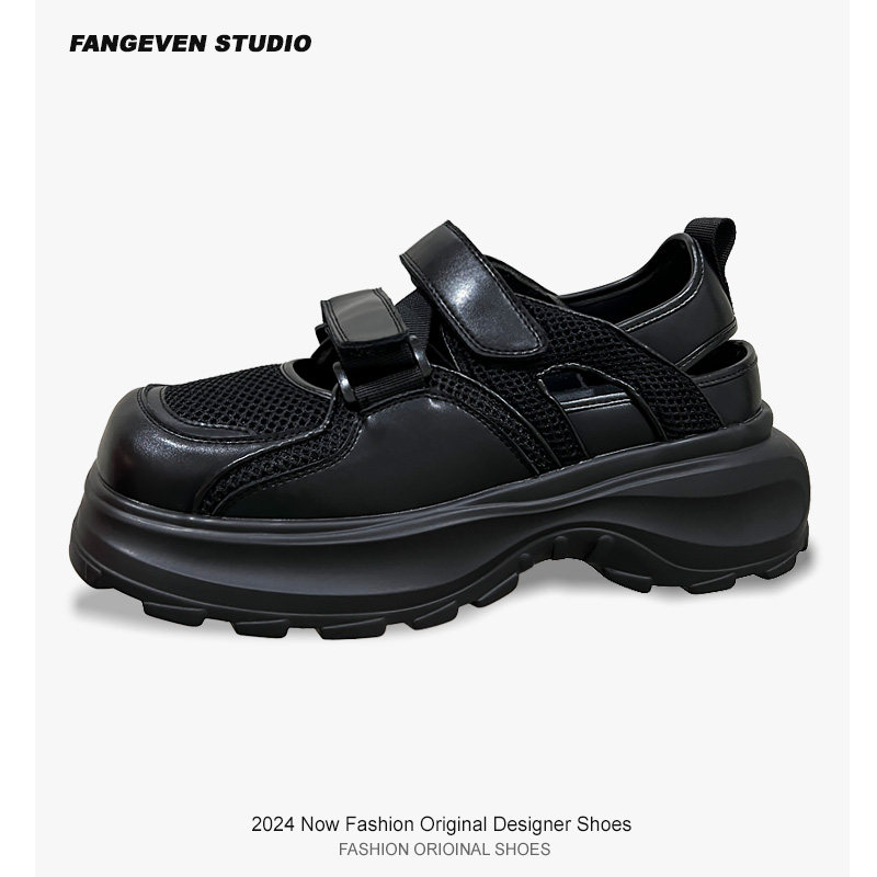 FangEven户外机能运动鞋男女魔术贴网面凉鞋厚底增高7cm沙滩鞋潮
