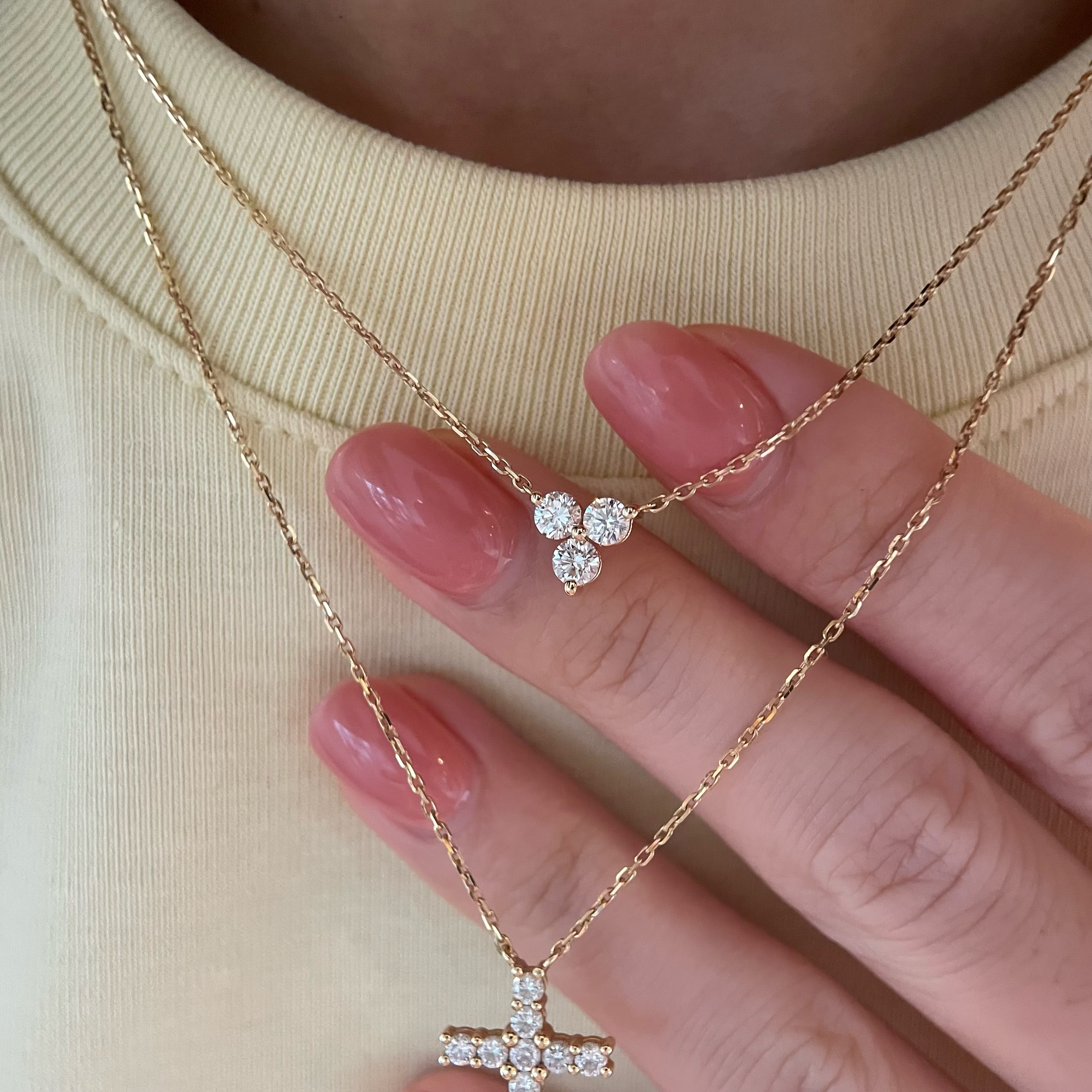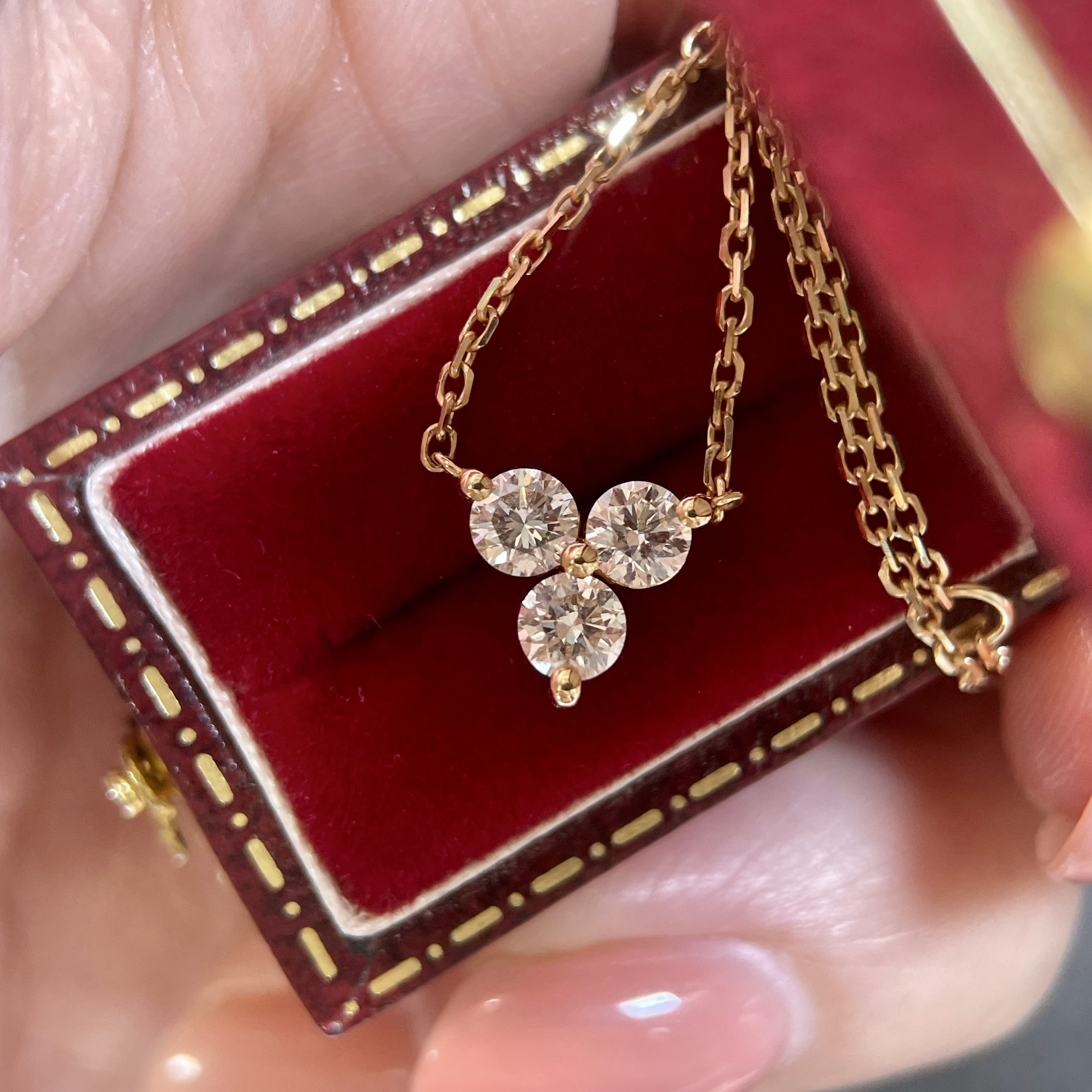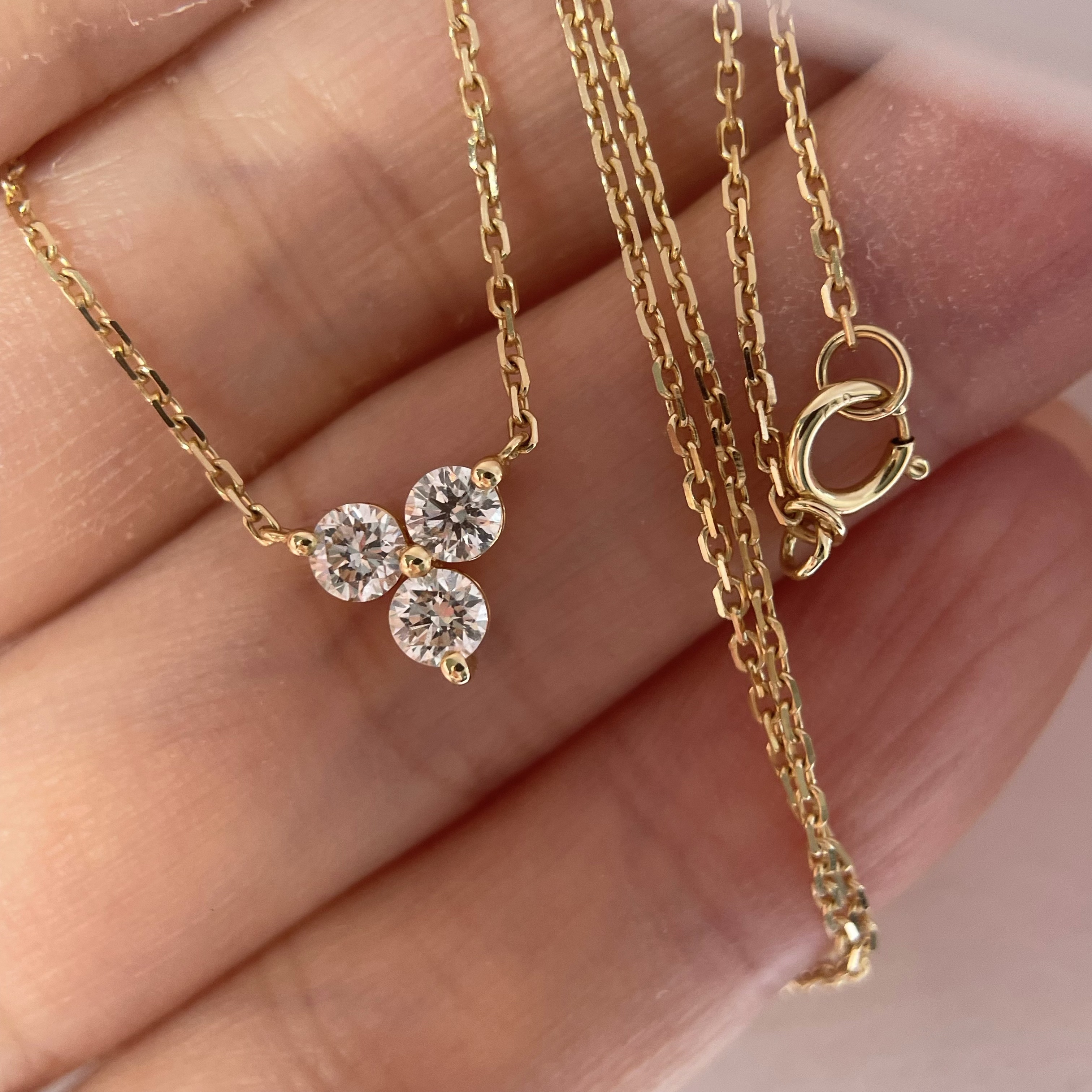 九十一篇 天然钻石 45分钻石三叶草项链18K黄金 百搭真钻锁骨链