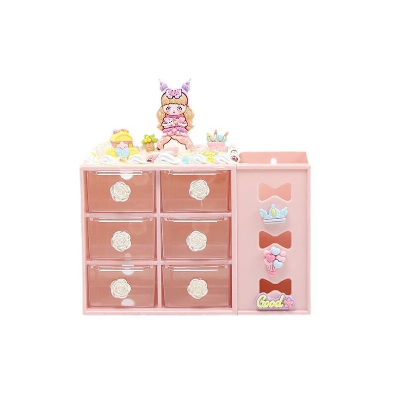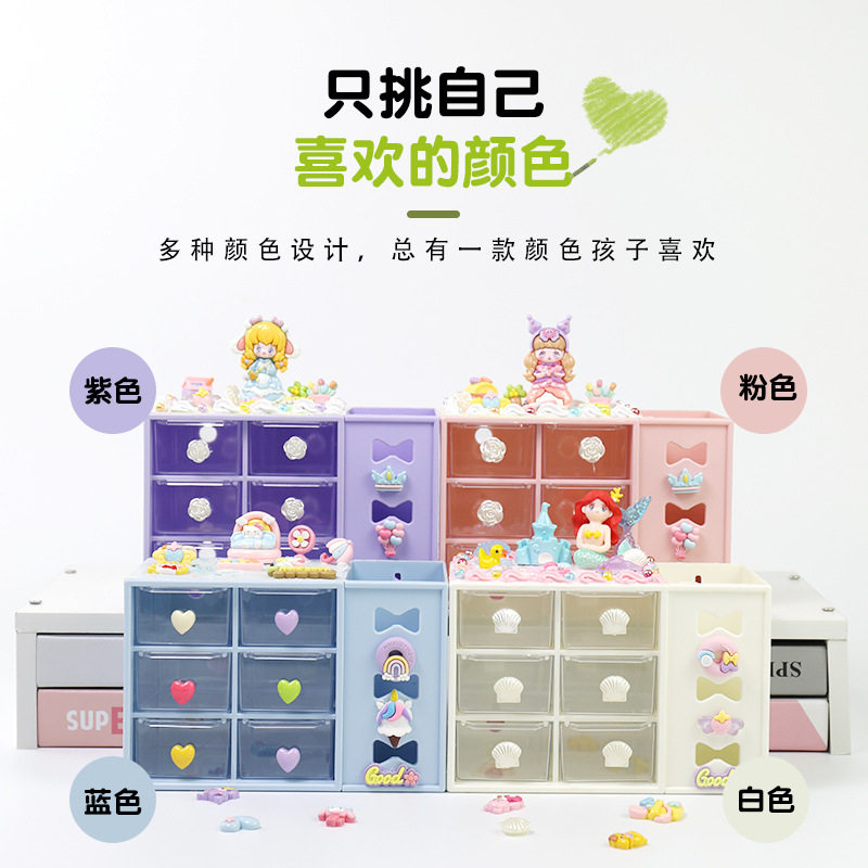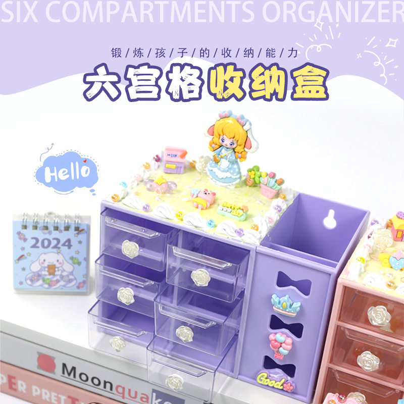 新款儿童六宫格diy收纳盒 学生多功能桌面笔筒置物架文具笔架