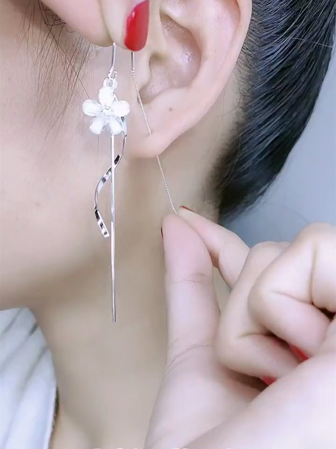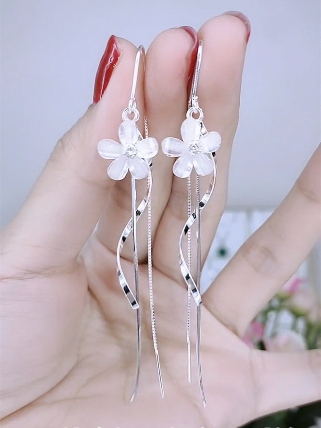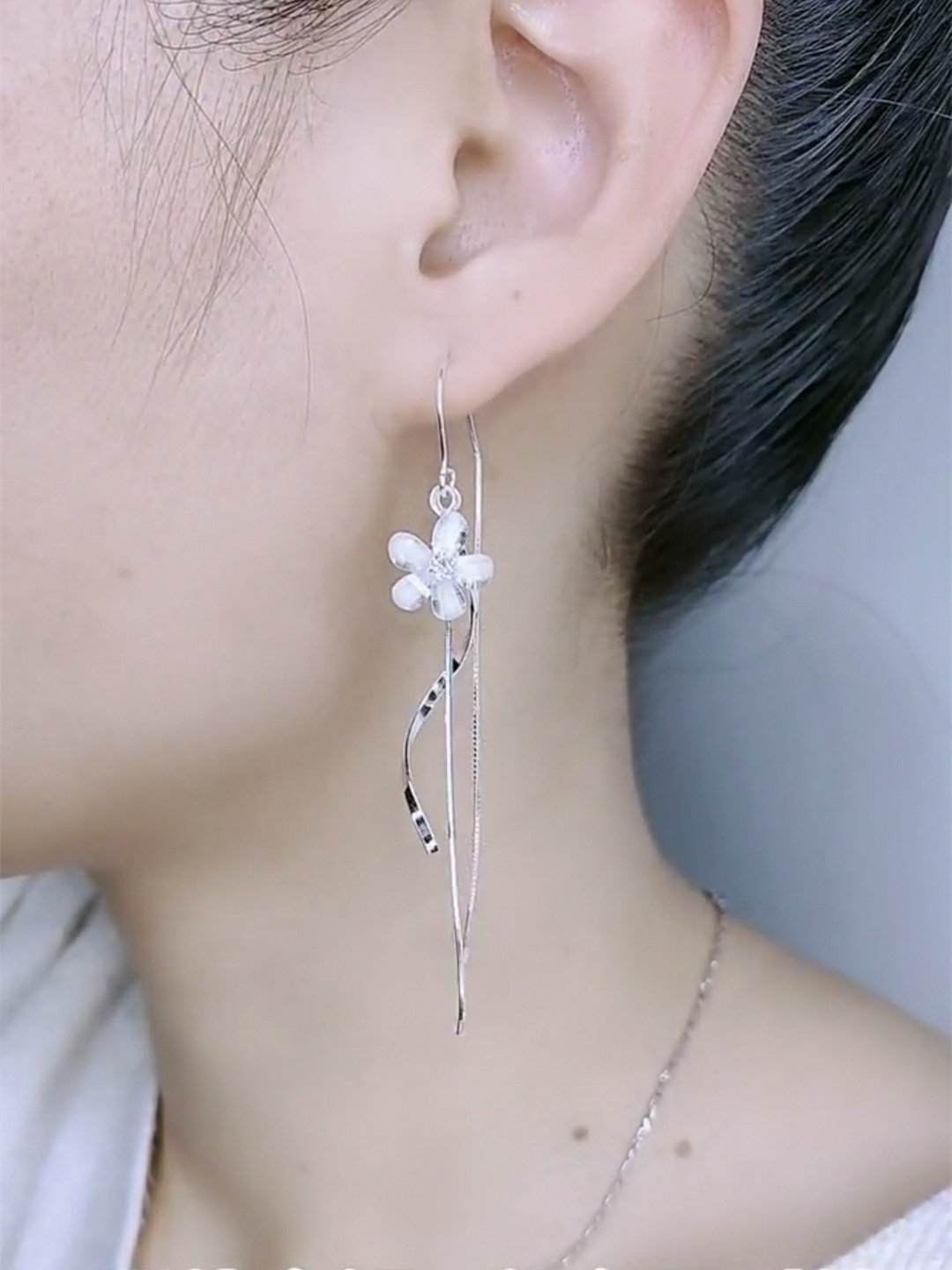 波浪花朵流苏耳线女银色防丢设计感网红百搭耳饰2021新款防过敏潮