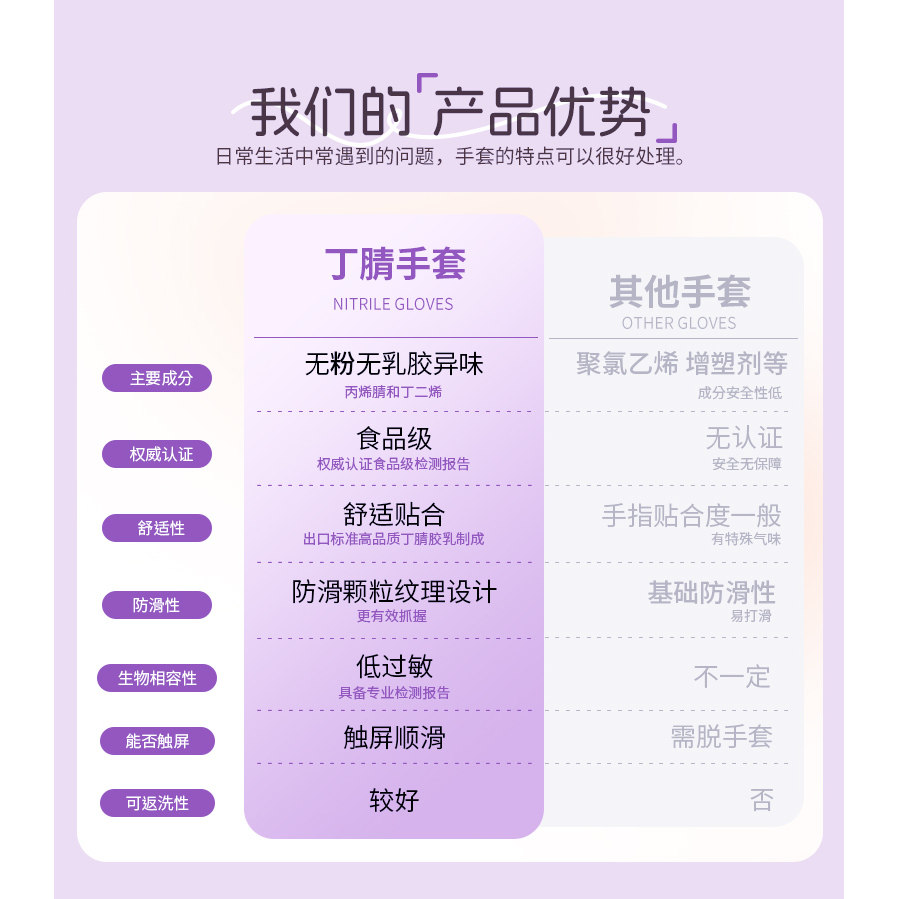 添赞食品级一次性丁腈手套花色组合家务洗碗厨房加厚防滑30只装
