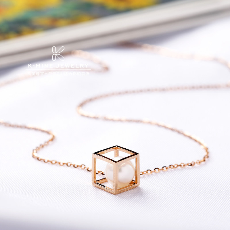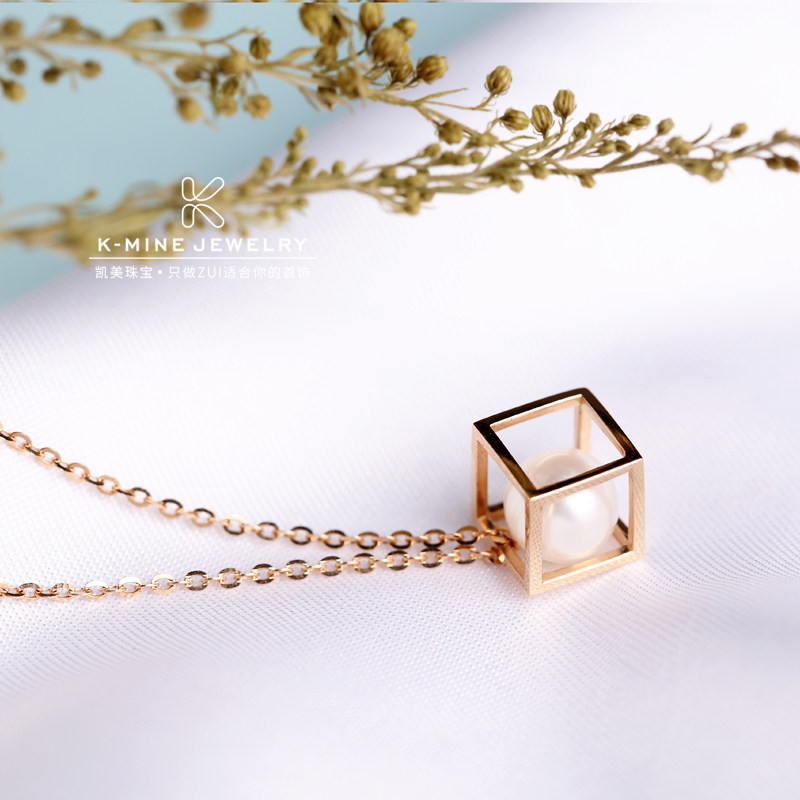 18K彩金天然淡水珍珠项链吊坠女锁骨链韩版简约清新百搭正品礼物