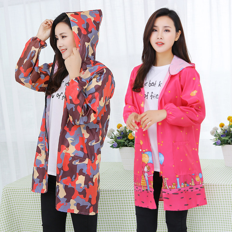 长袖罩衣大人时尚围裙厨房家用做饭防水防油女拉链新款工作服薄款