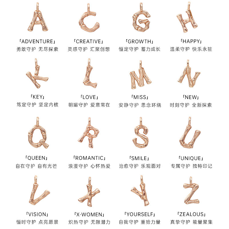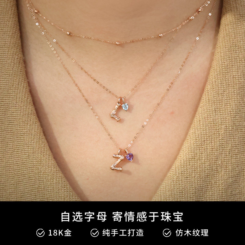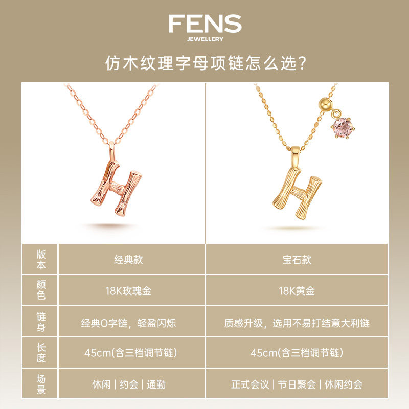 FENS珠宝 字母项链18K金项链女素链玫瑰金吊坠锁骨链