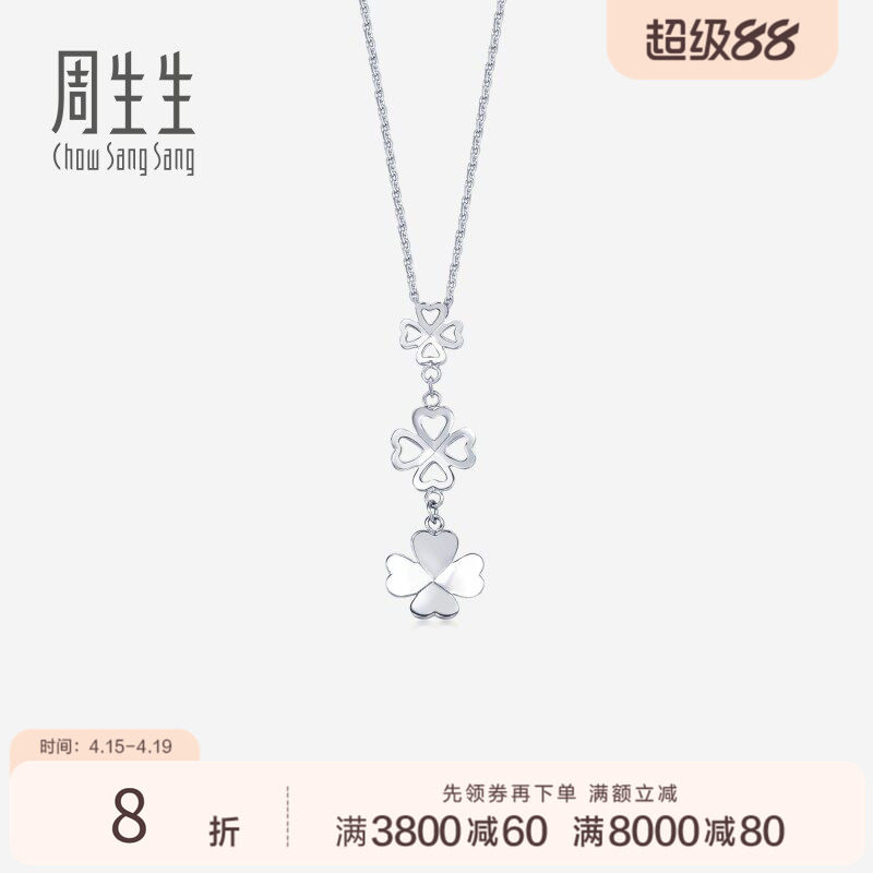 周生生Pt950铂金四叶草吊坠白金项坠女挂坠定价55253P