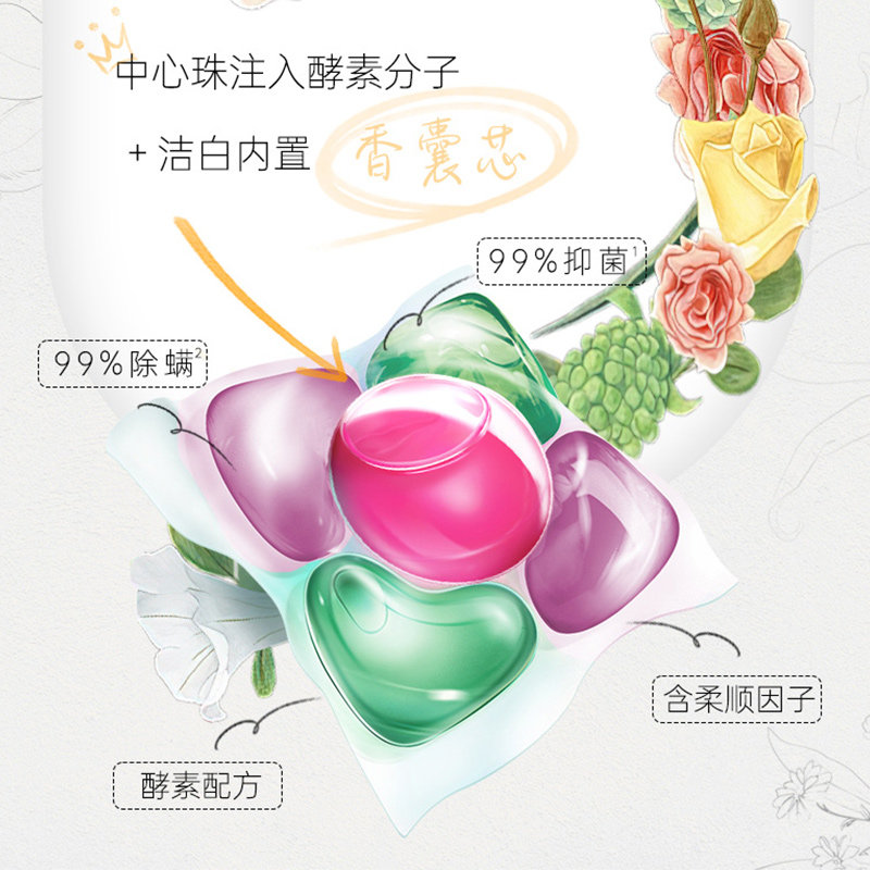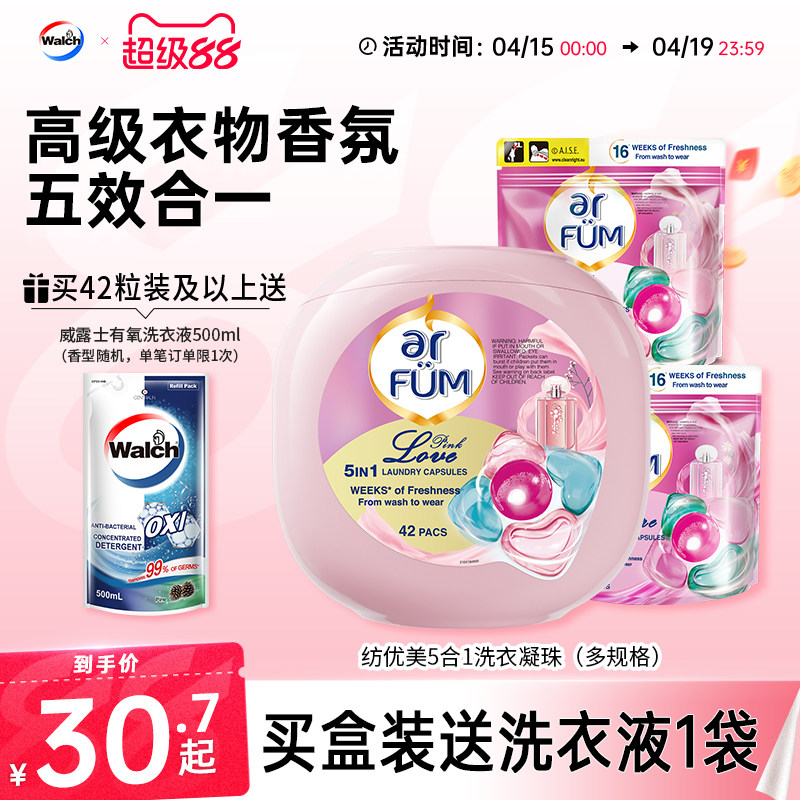 纺优美5合1洗衣凝珠香氛留香持久洁净除螨柔顺爱的宣言威露士正品