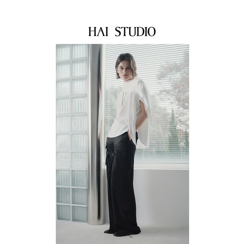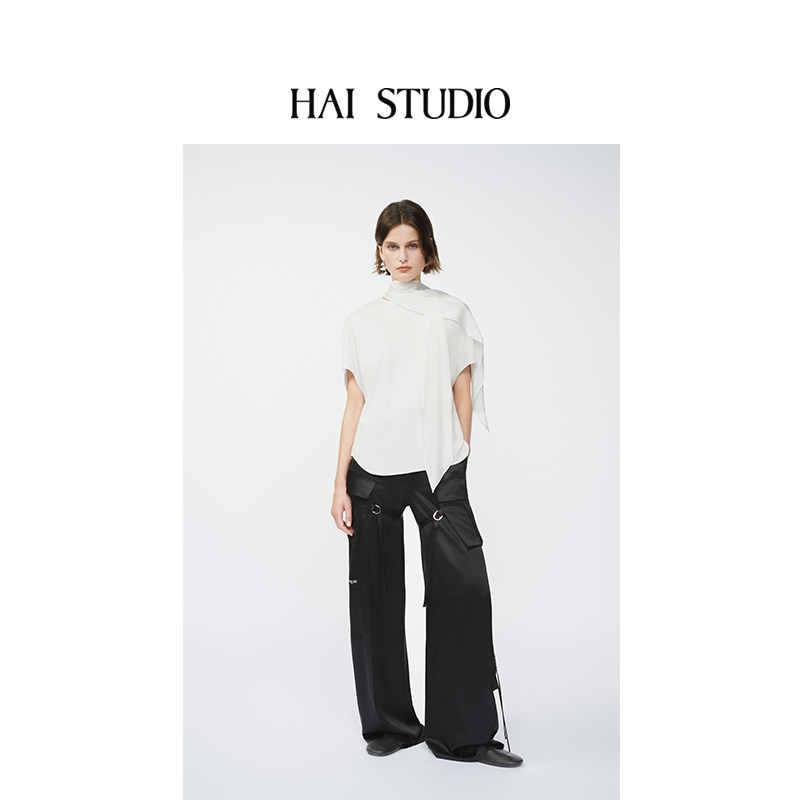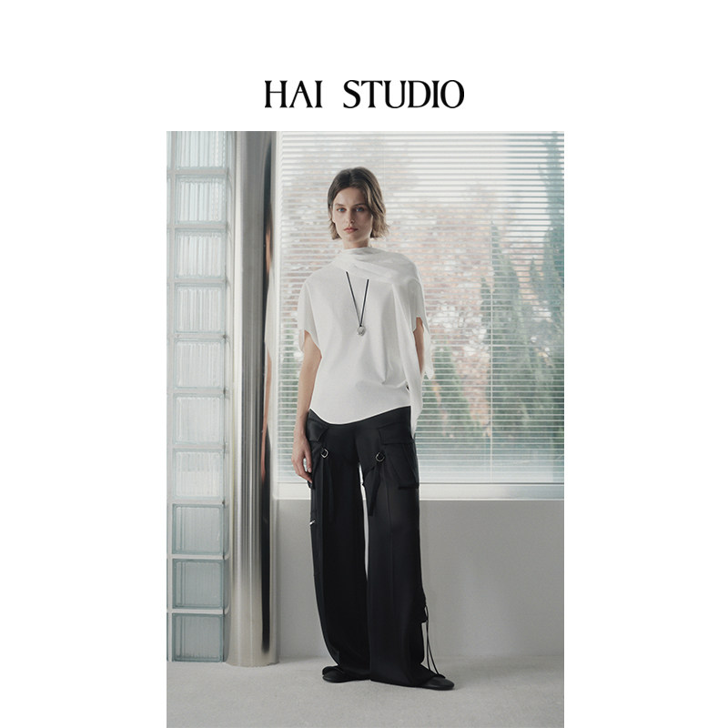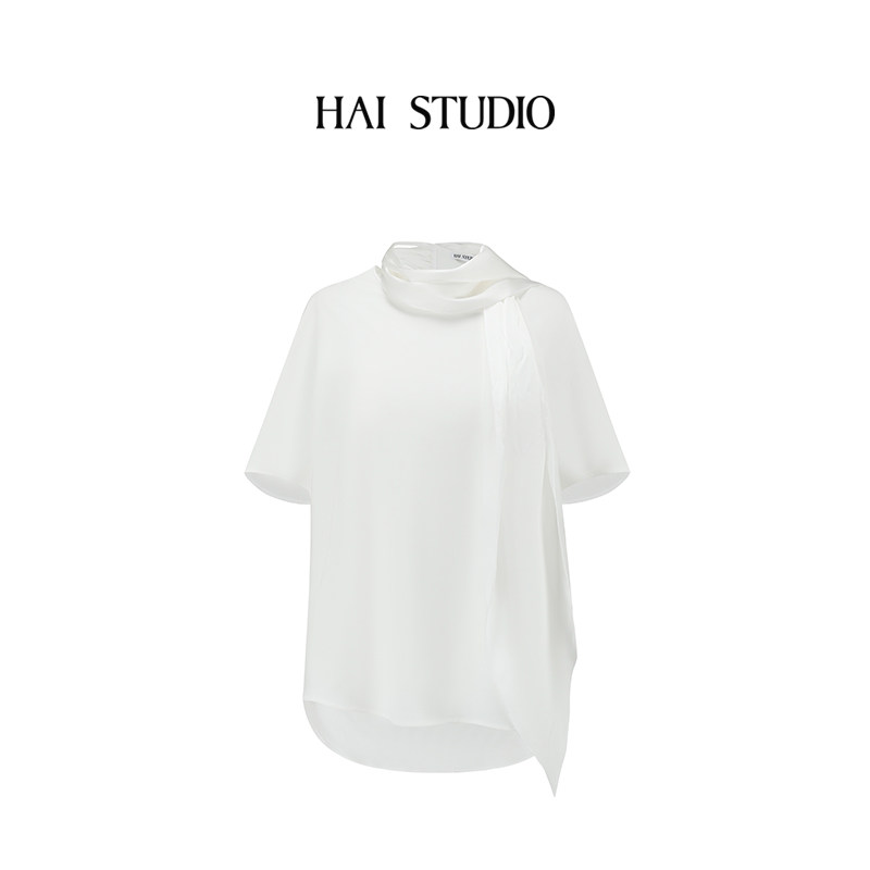 HAI STUDIO2026春夏新品 女士飘带领短袖T恤 百搭极简宽松上衣