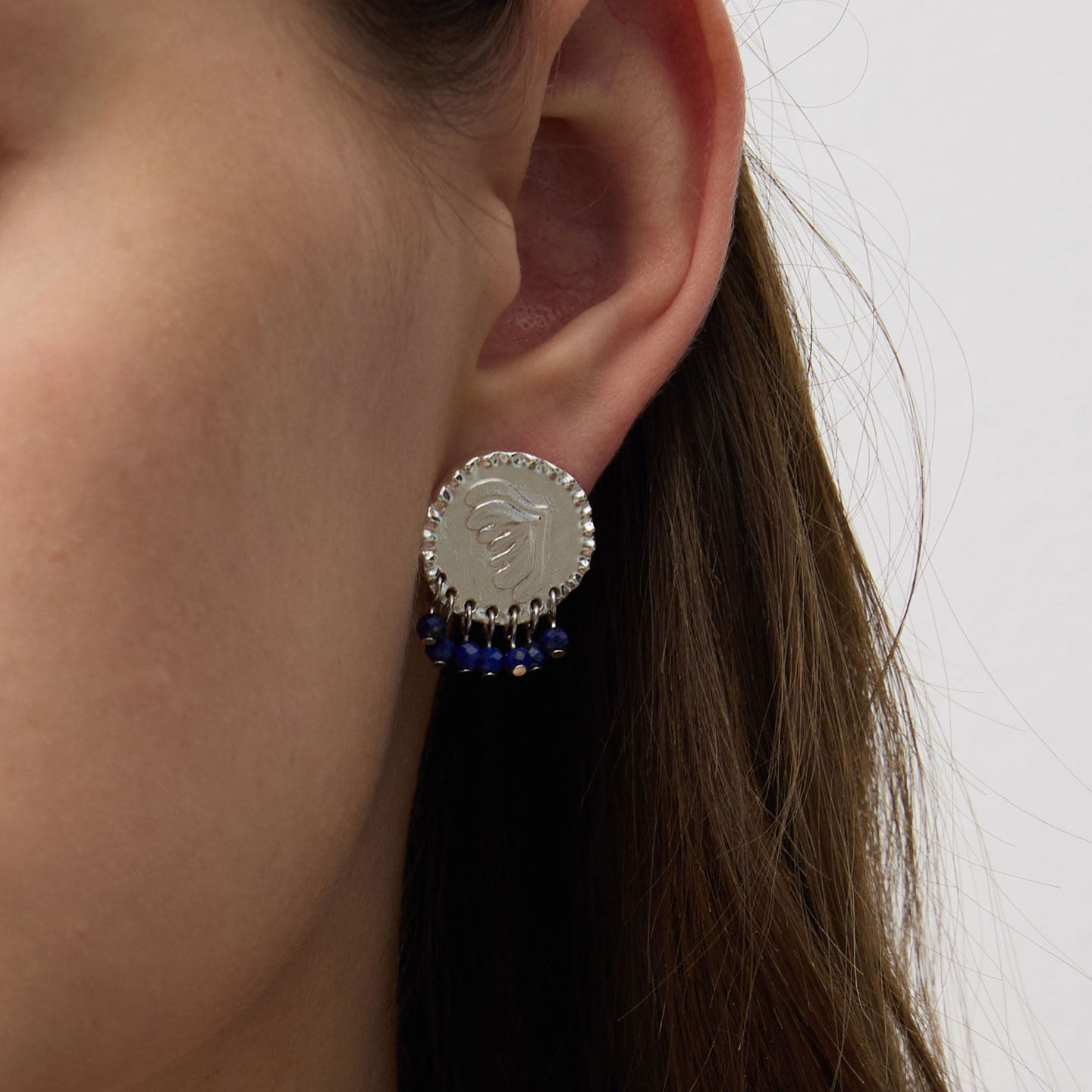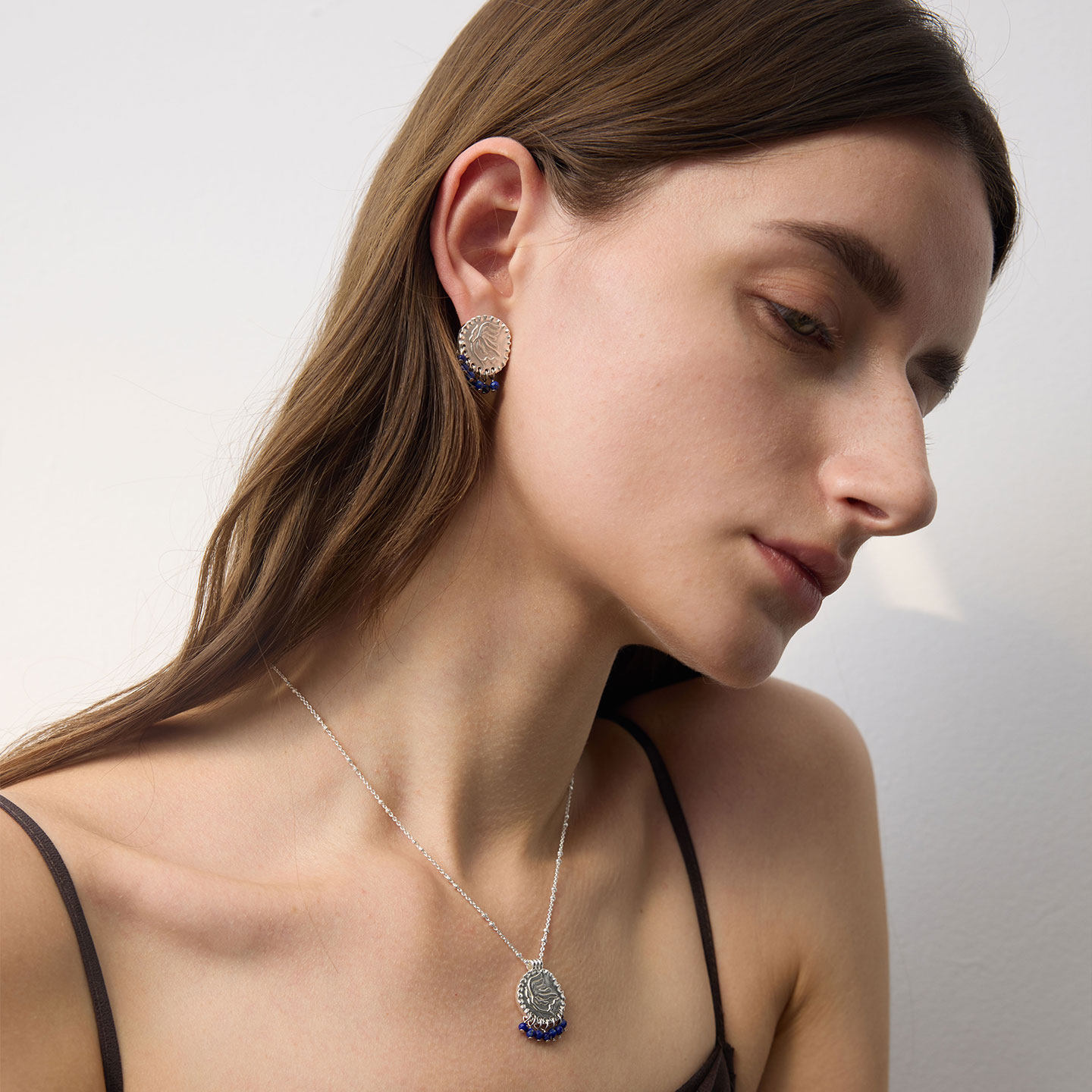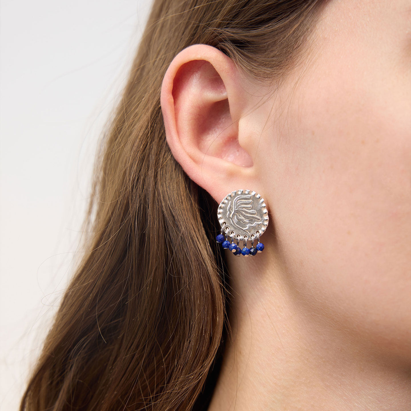 ZHAO ACAP原创设计野百合浮雕硬币青金石扭珠AB款耳钉