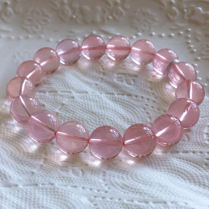 天然星光粉水晶手串 粉晶手链冰种冰橘粉芙蓉粉马达加斯加果冻粉