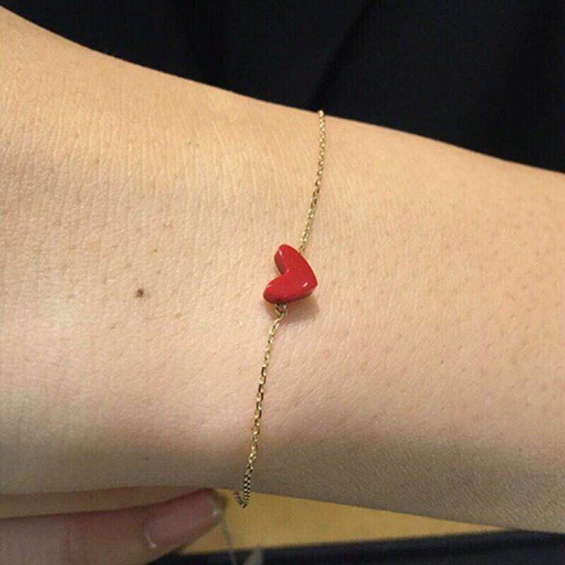 S925银日本小红心AHK SH粉合成石新年红色手链耳钉手链心形脚链