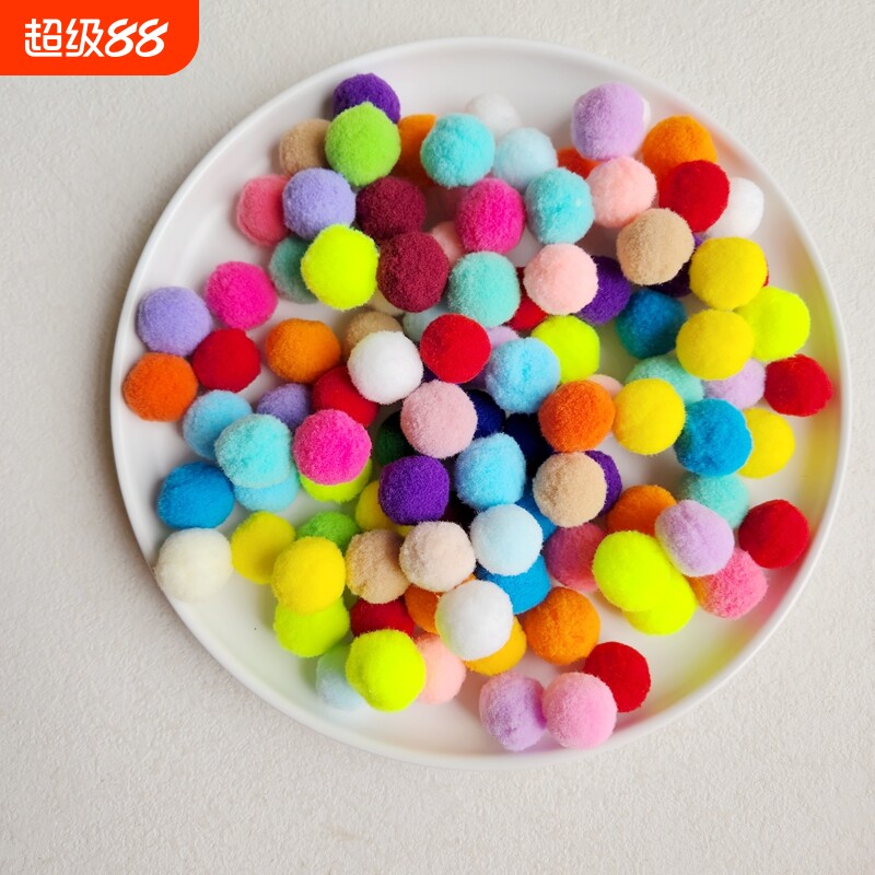 高弹彩色小毛球diy儿童手工毛绒球饰品材料马卡龙绿色蓝色粉色
