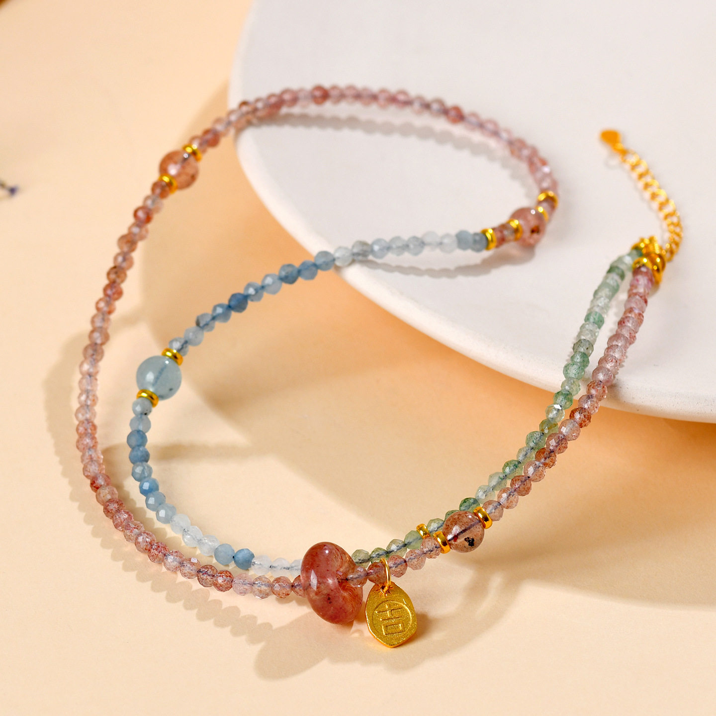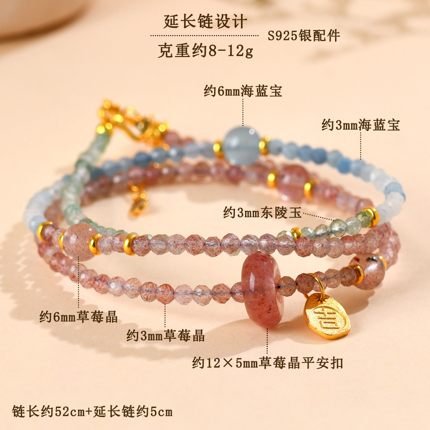天然水晶海蓝宝草莓晶锁骨链S925银延长链可调节女士时尚项链