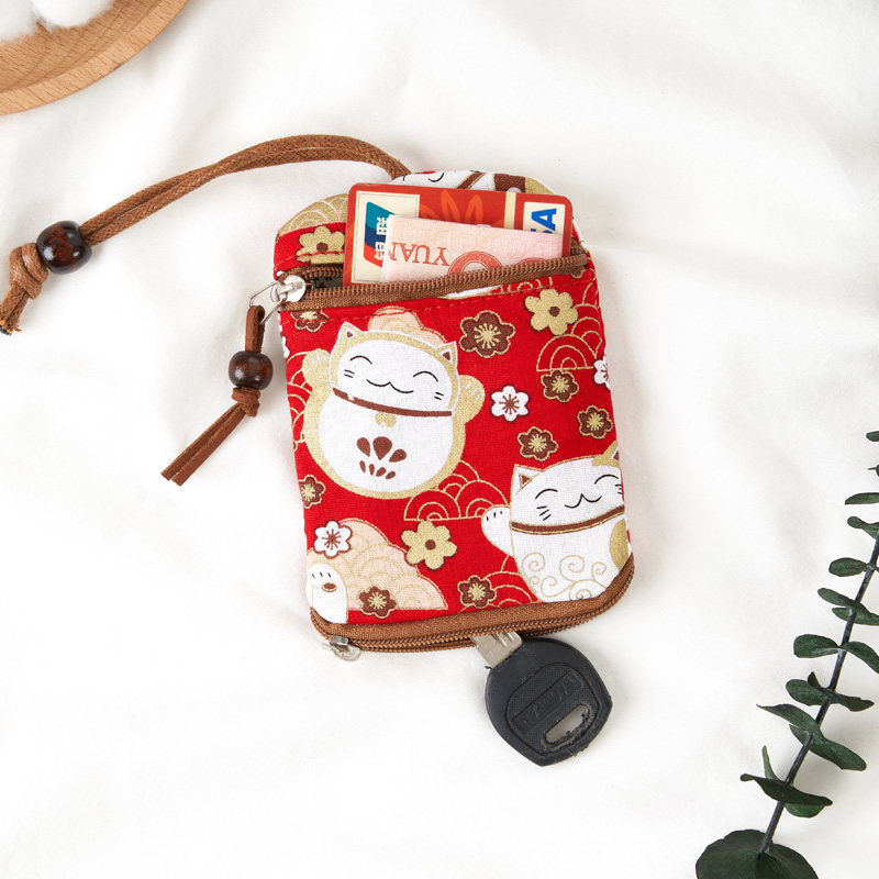 抽拉式钥匙包布艺女通用收纳包二合一小巧汽车钥匙卡套迷你锁匙包