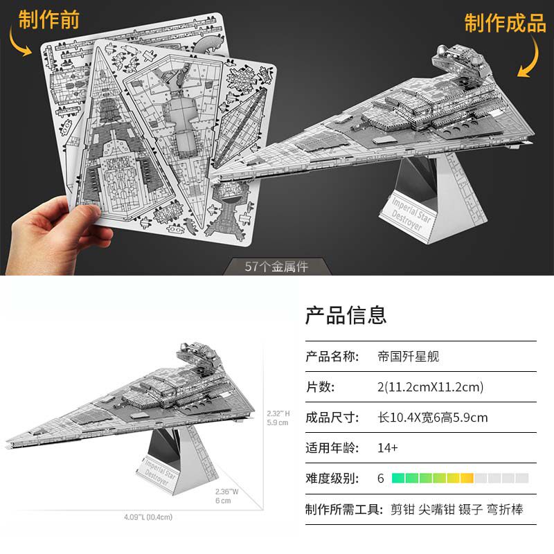 全金属拼装模型不锈钢3D立体拼图DIY手工帝国歼星舰铁片飞船成人