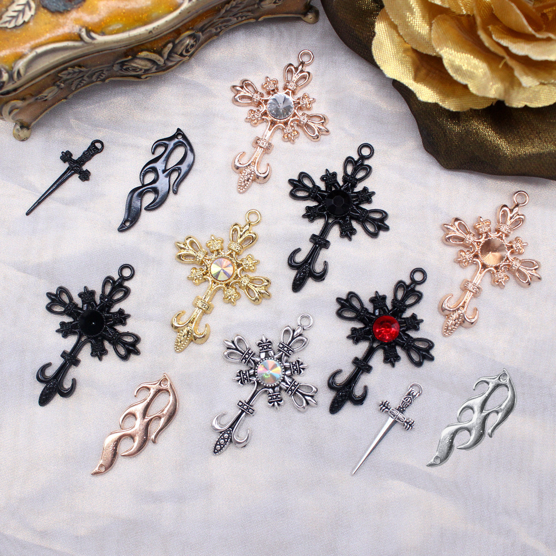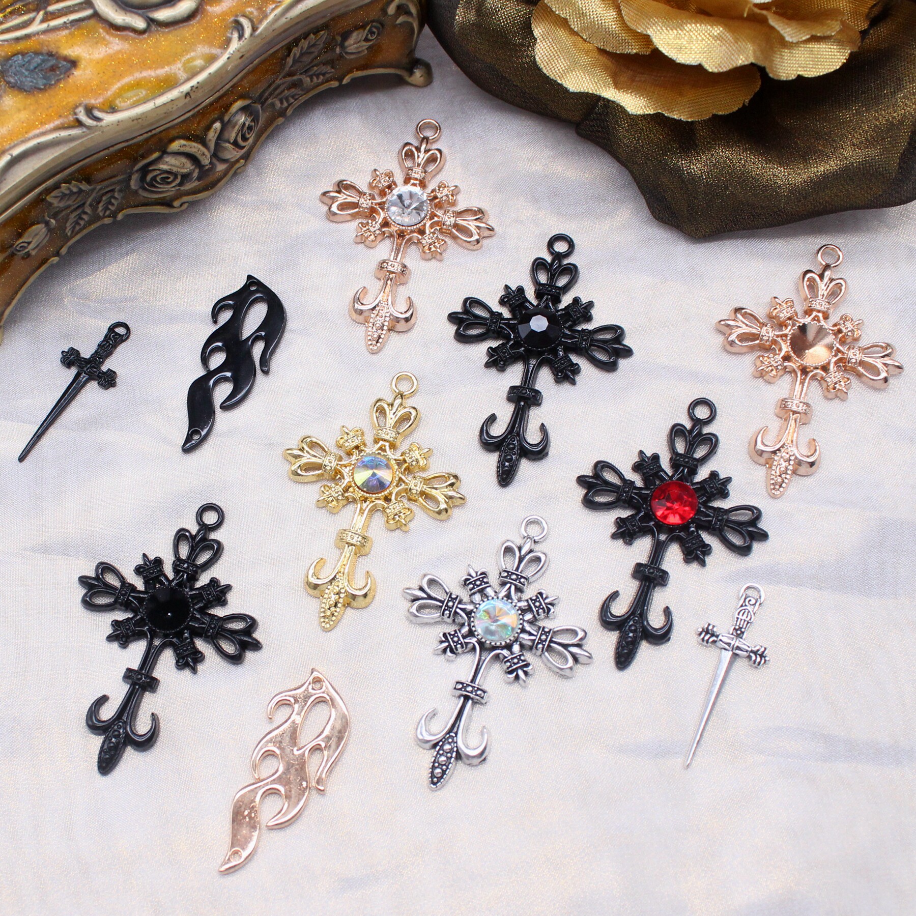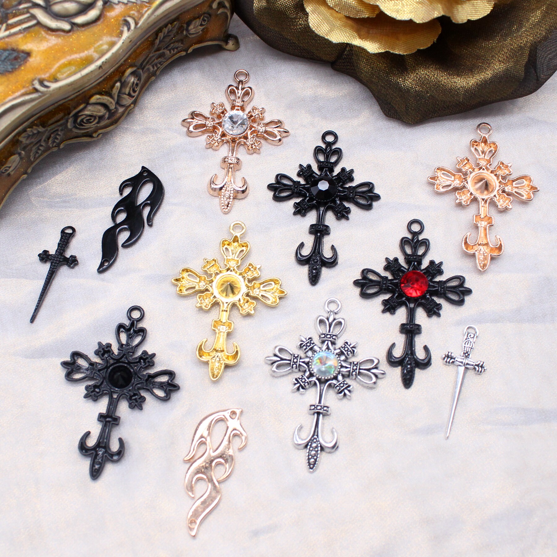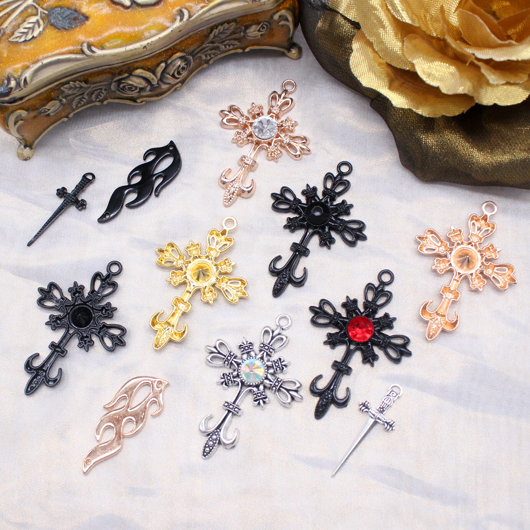 diy复古饰品十字迷你剑挂坠材料泳黑镂空十字架挂坠火焰耳饰配件