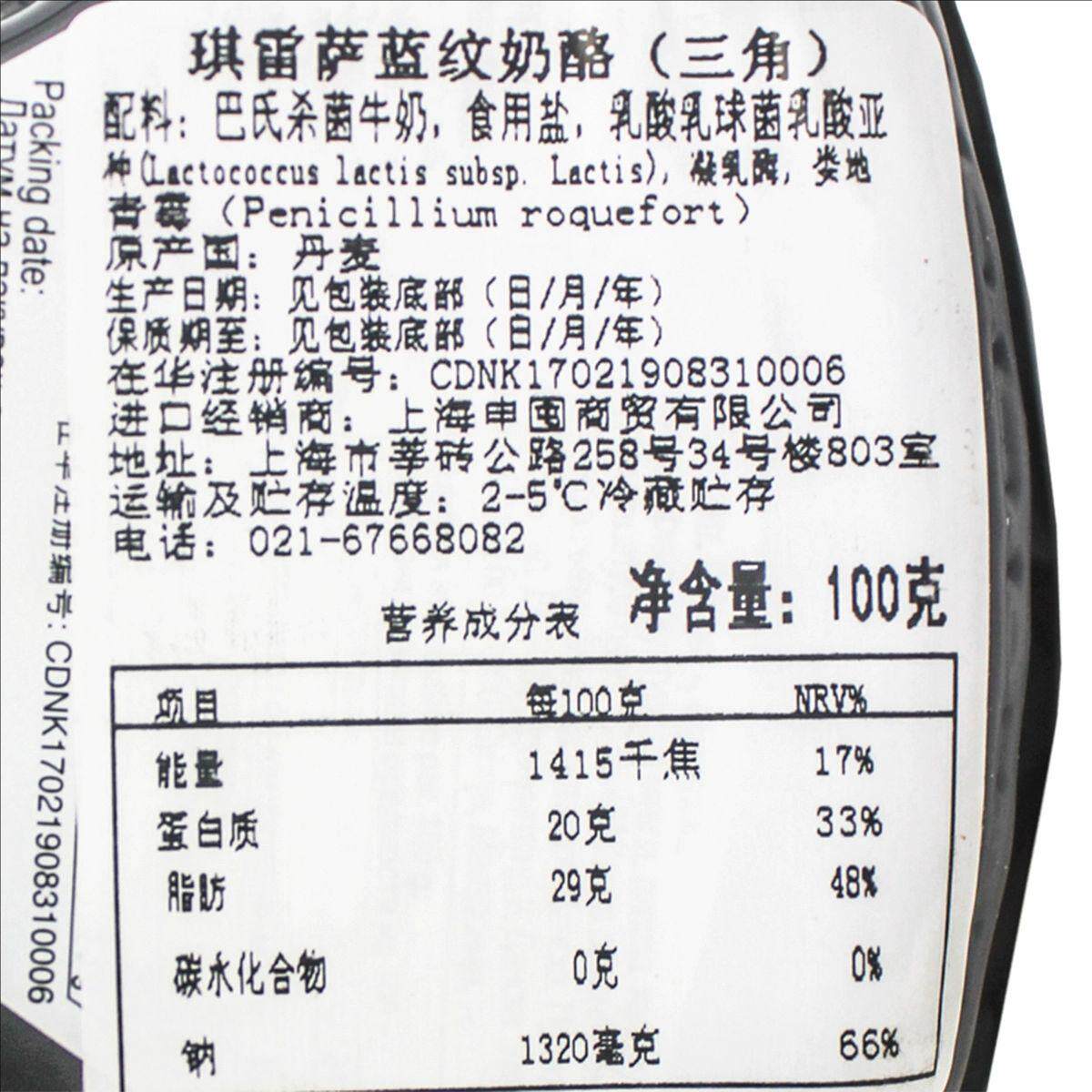 琪雷萨蓝纹奶酪100g丹麦进口蓝波即食奶酪蓝波芝士三角蓝纹臭奶酪
