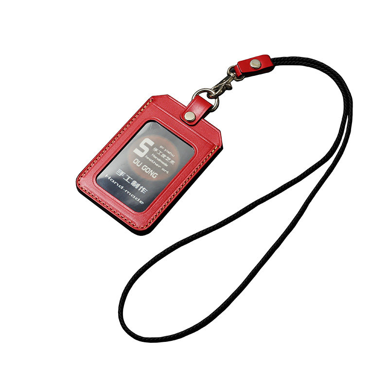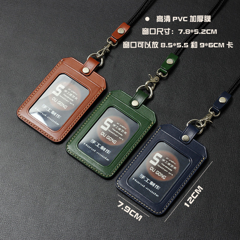 手工真皮员工工作证件卡套带挂绳胸牌挂颈公交饭卡上班卡工牌工卡