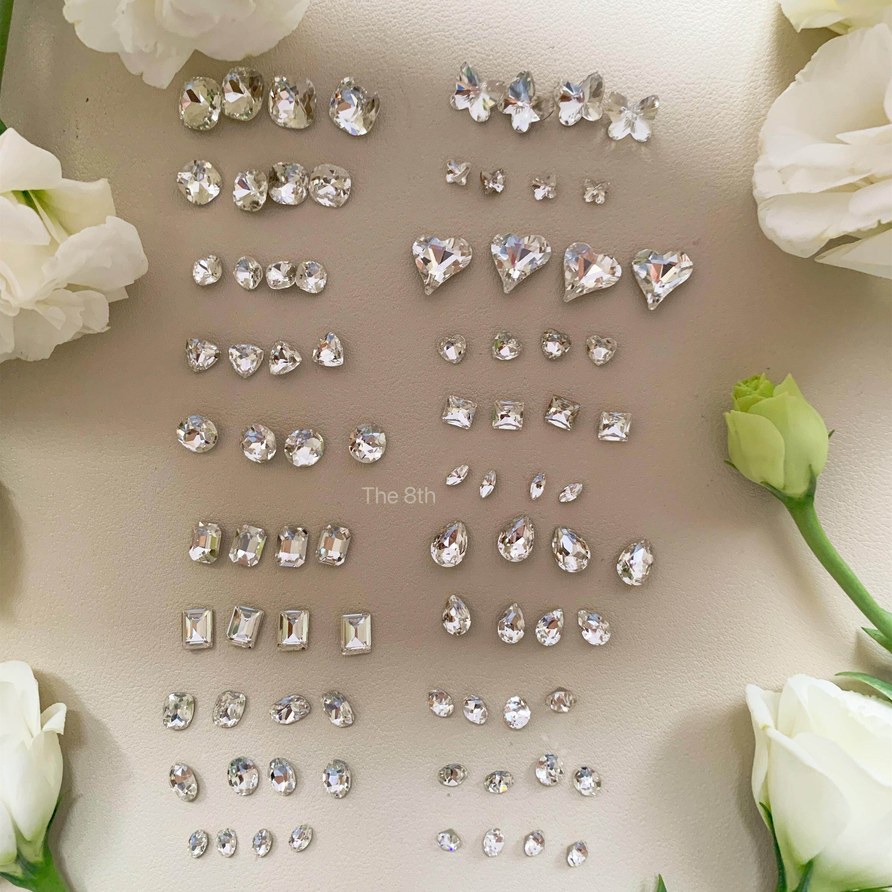 小八精品K9全白尖底合集高品质超闪异形美甲钻饰品歪心爱心肥方