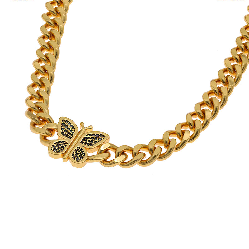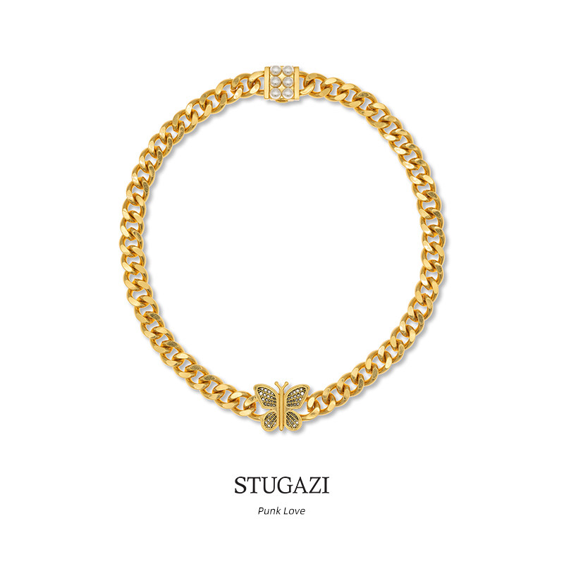 STUGAZIPunk Love金蝴蝶珍珠古巴链潮流镀金气质轻奢锆石颈链情侣