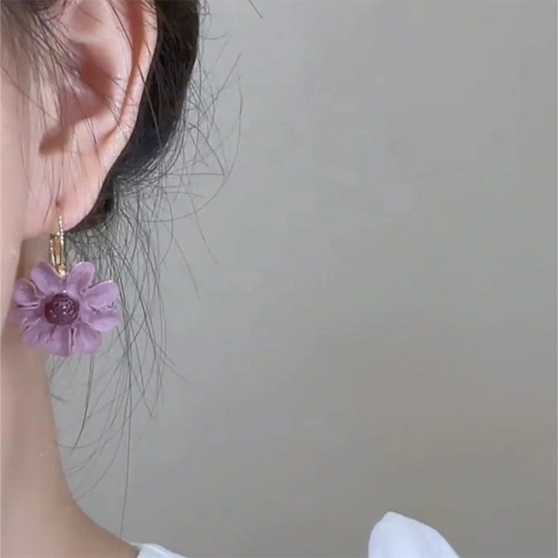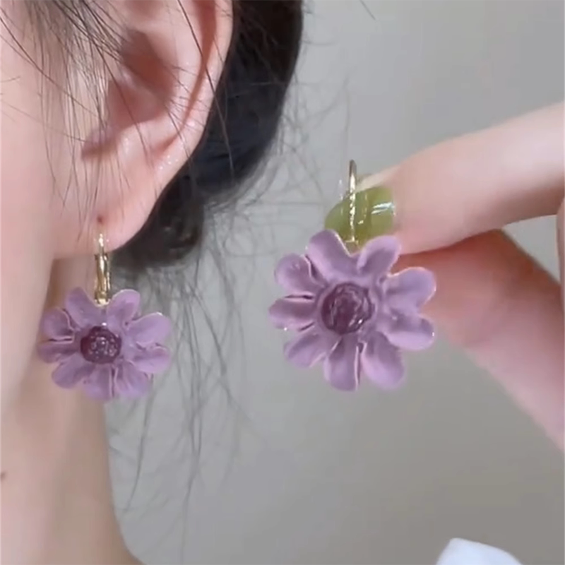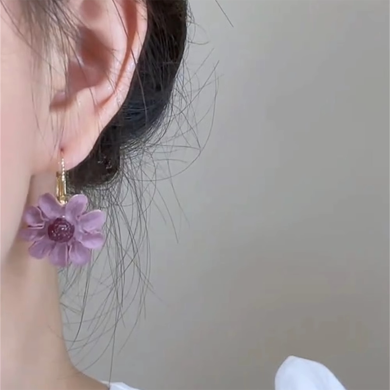 超仙温柔紫色花朵耳钉2025新款爆款森系独特个性设计感高级耳饰品