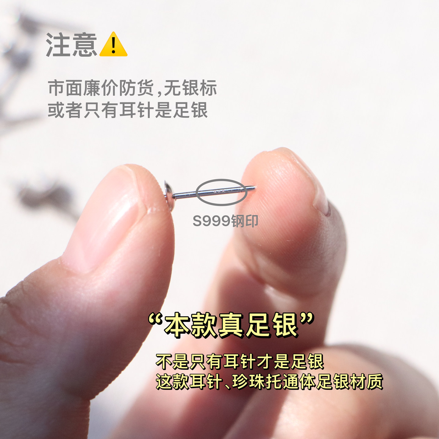 YOUR足银999耳钉养耳天女极光小尺寸珍珠耳钉人造澳白耐看耳饰