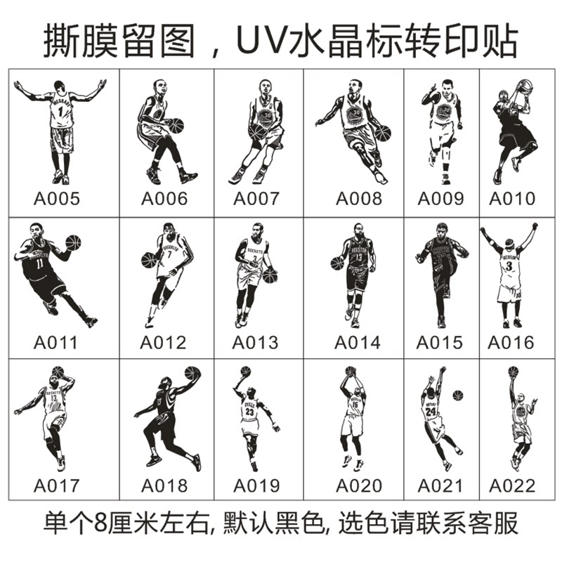 撕膜留图UV水晶标转印贴画 NBA篮球明星手机笔记本电车水杯装饰品