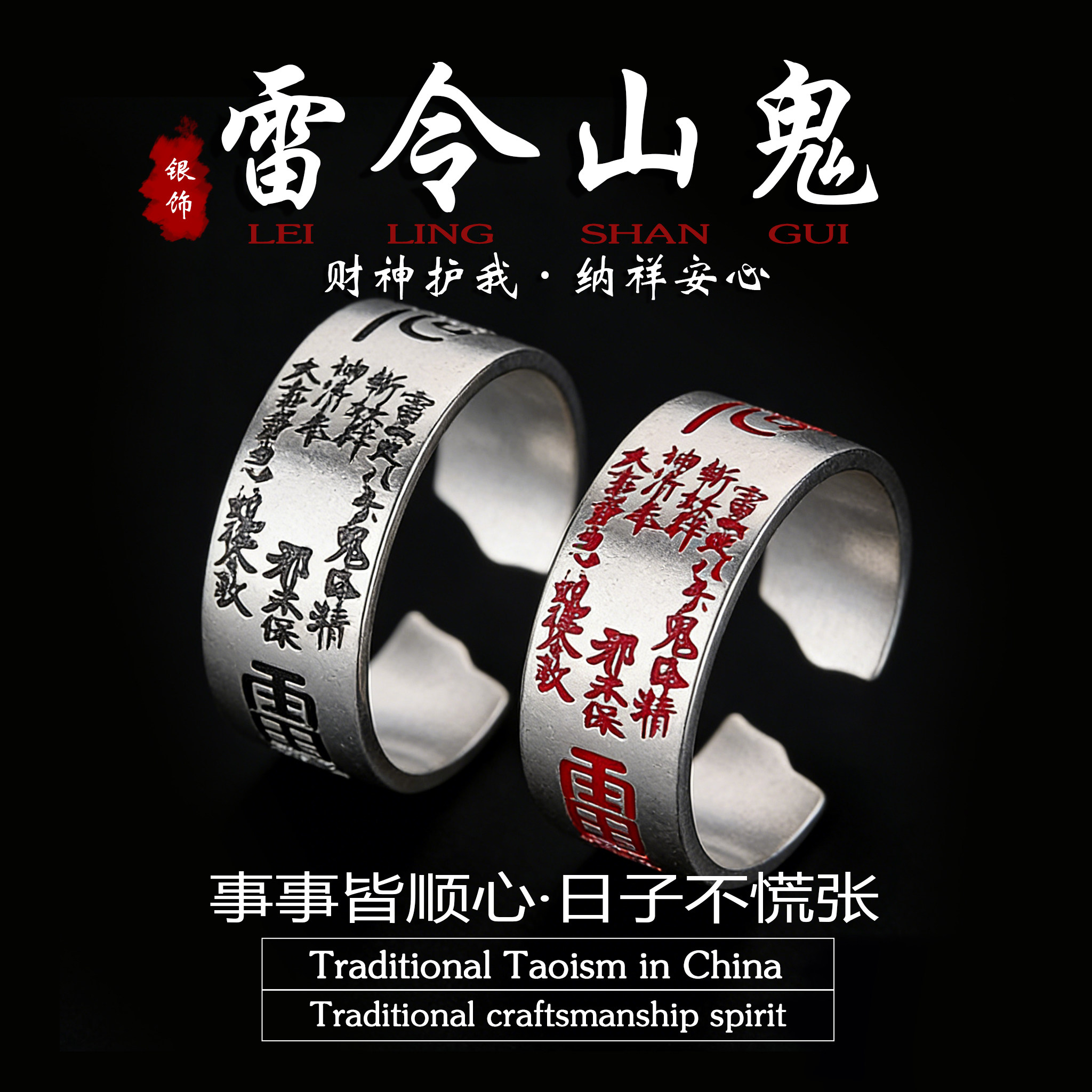 「道系」道家饰品雷令山鬼戒指朱砂925银平安本命年符护身悟道