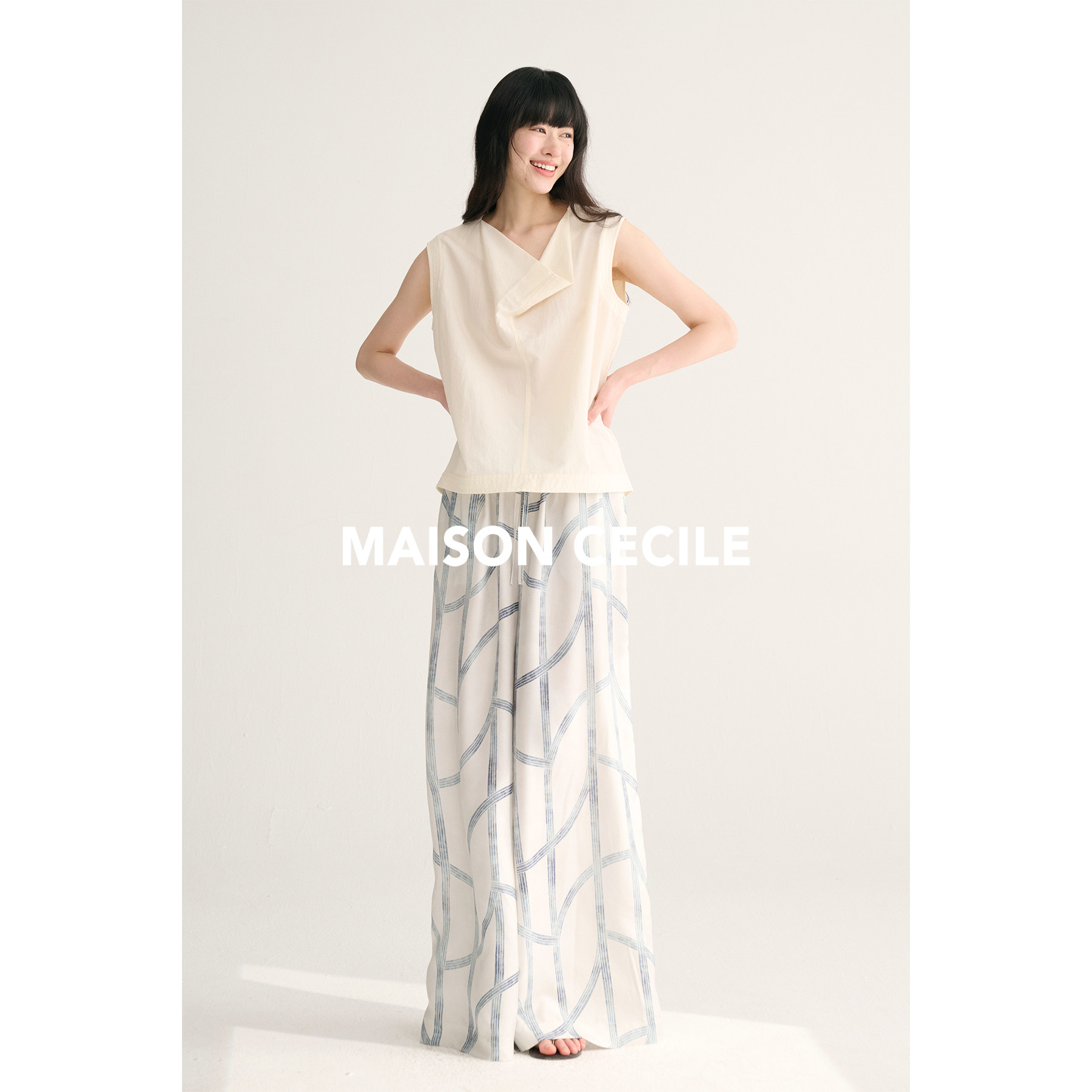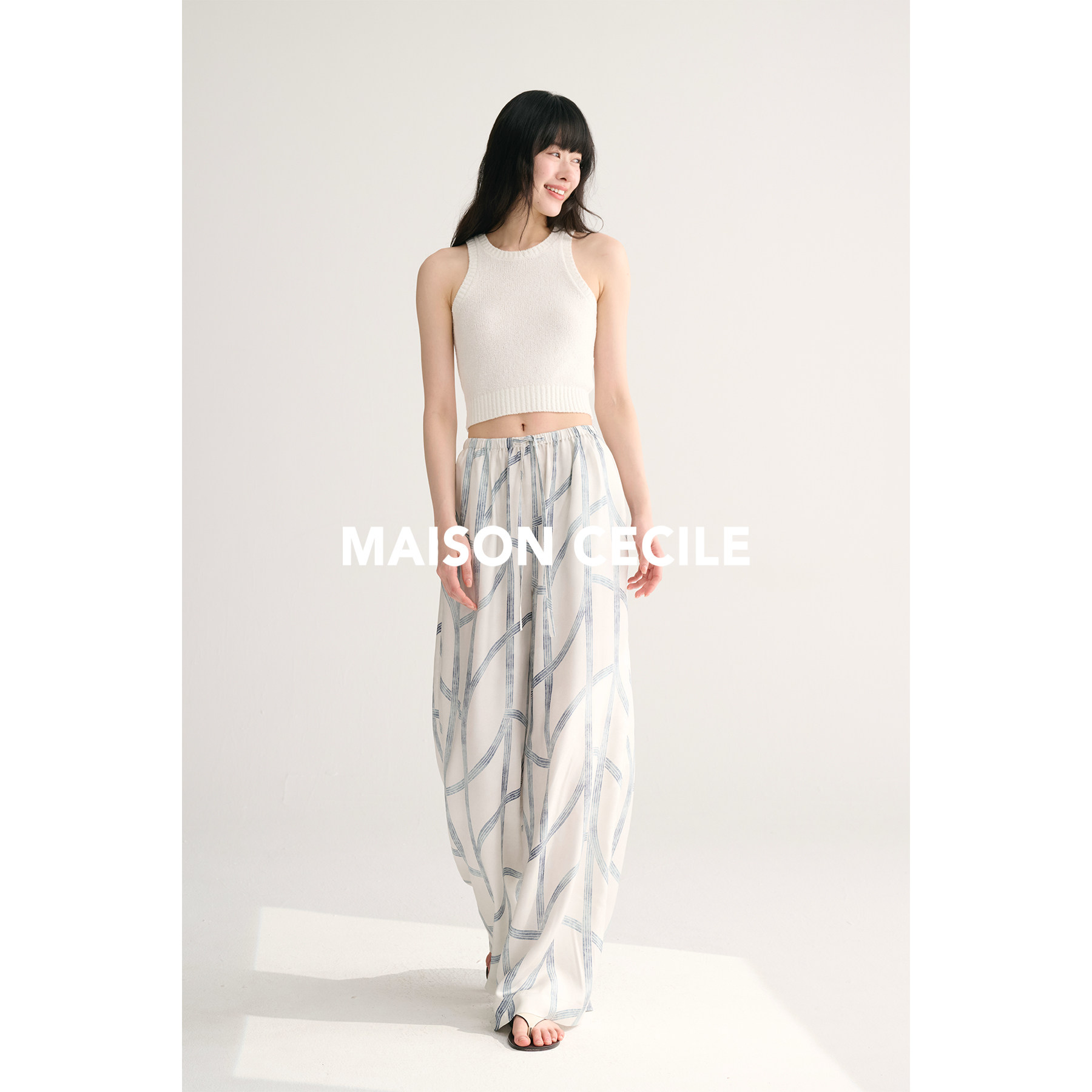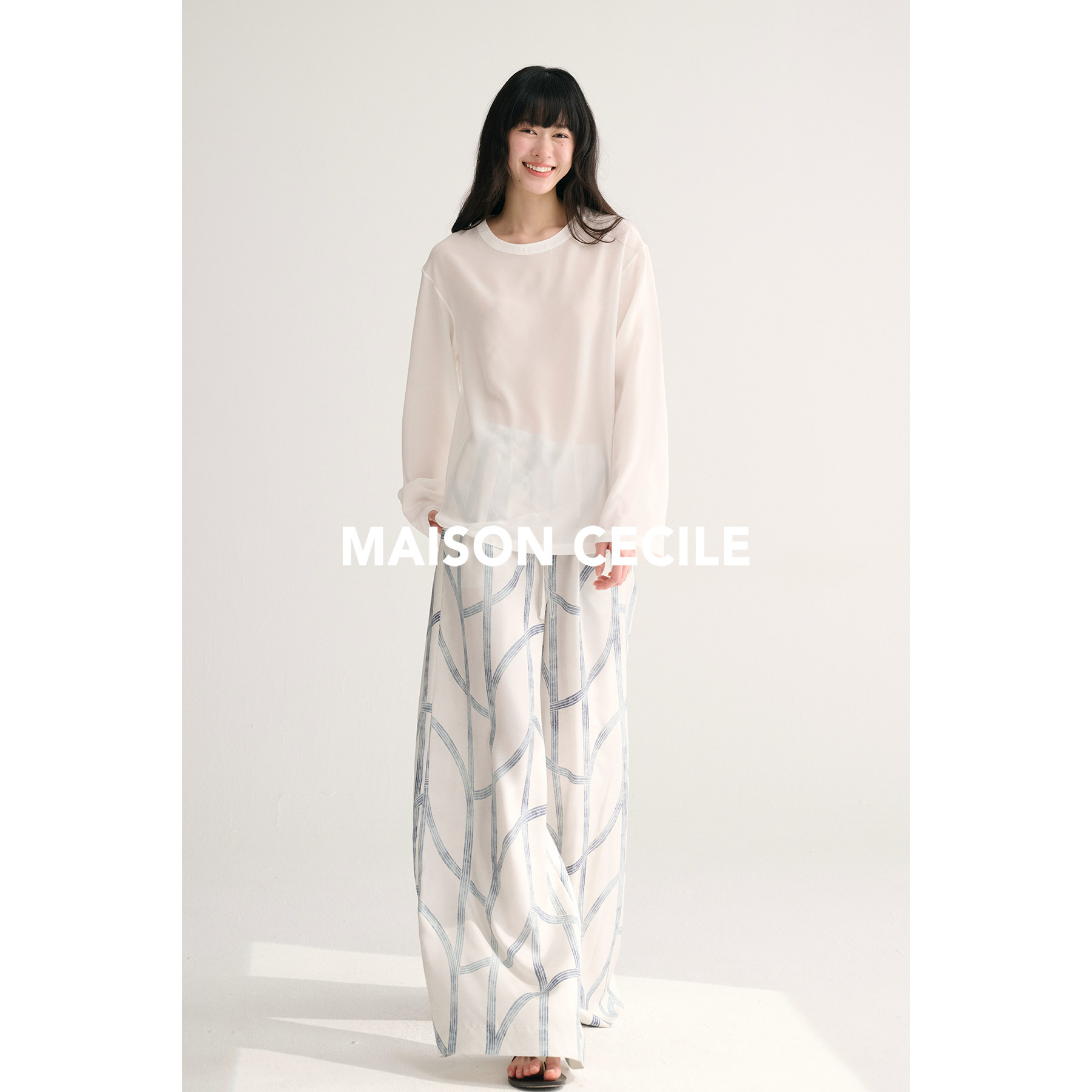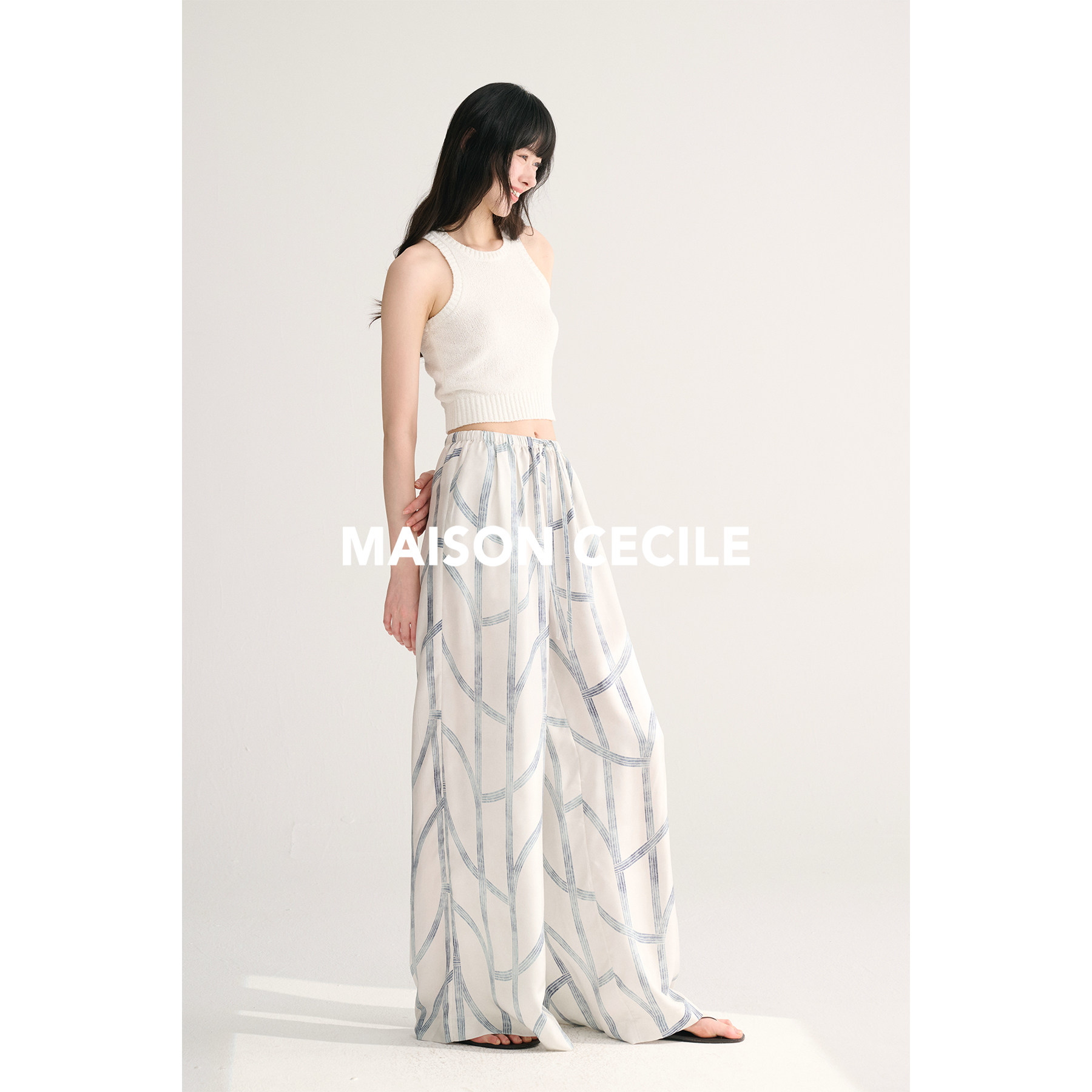 MAISON CECILE独家印花/100%桑蚕丝轻薄飘逸垂荡感透气慵懒阔腿裤