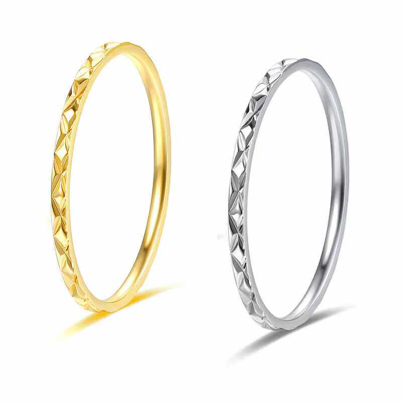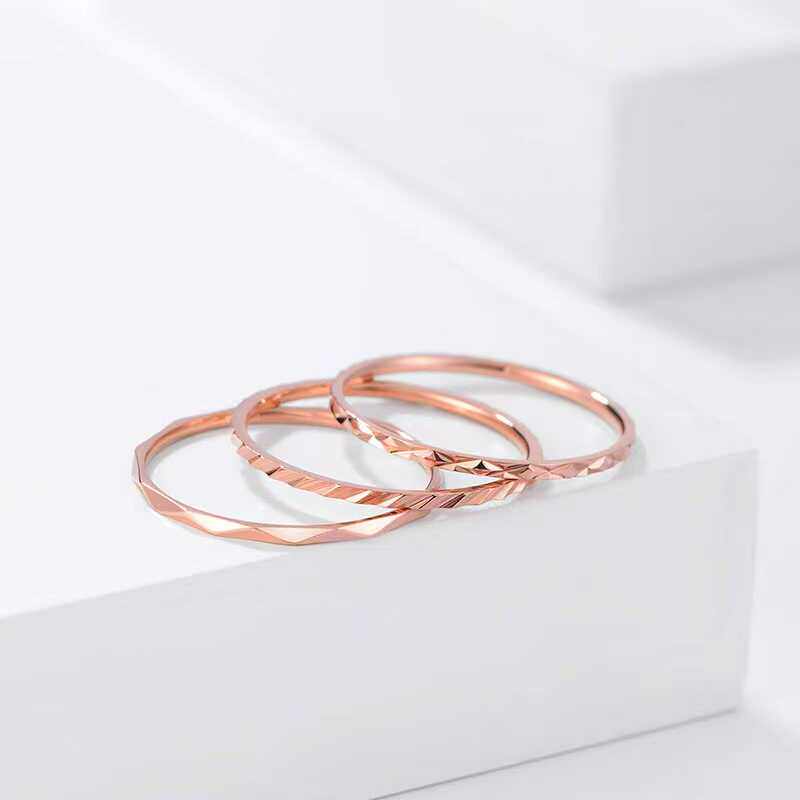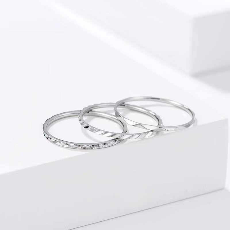 不掉色~2码钛钢蹦迪切面菱格戒指小码叠戴指环3码4码5码尾戒