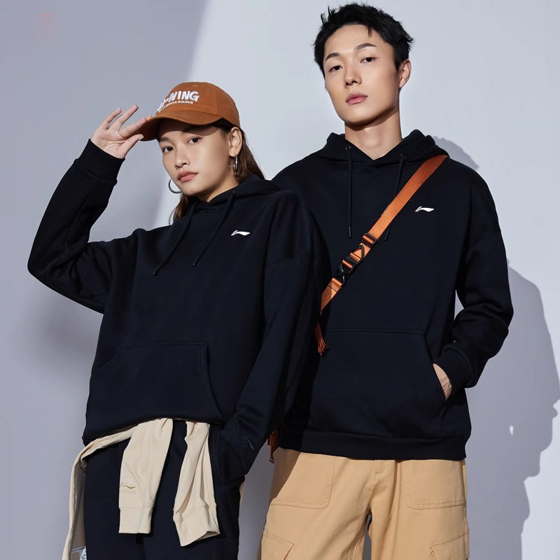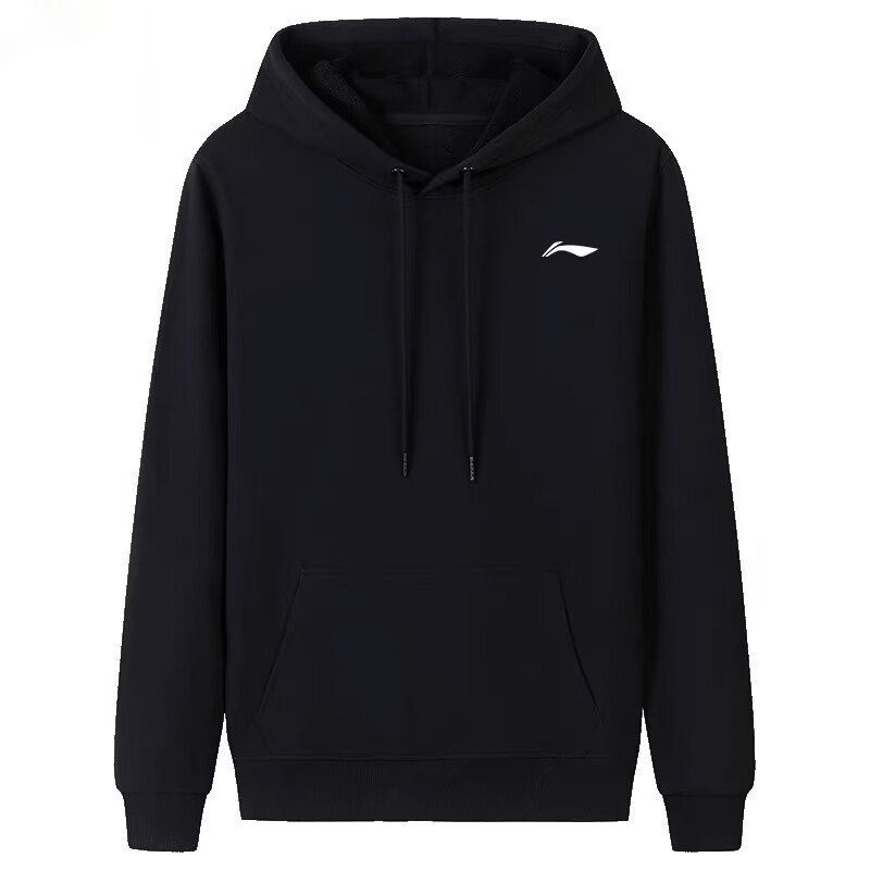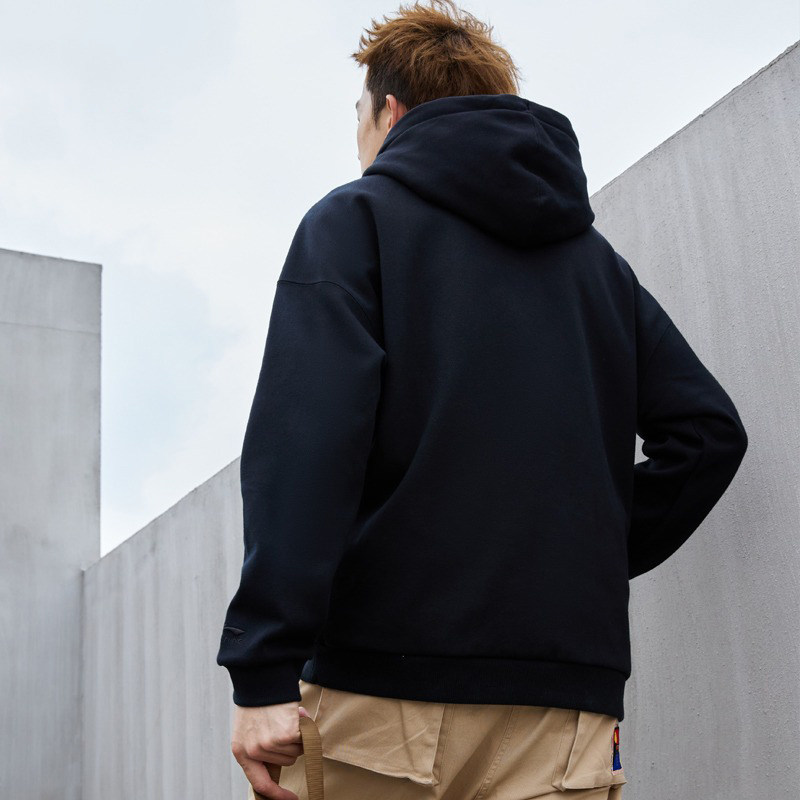 李宁连帽休闲卫衣男秋季新款官方正品宽松百搭黑色运动卫衣