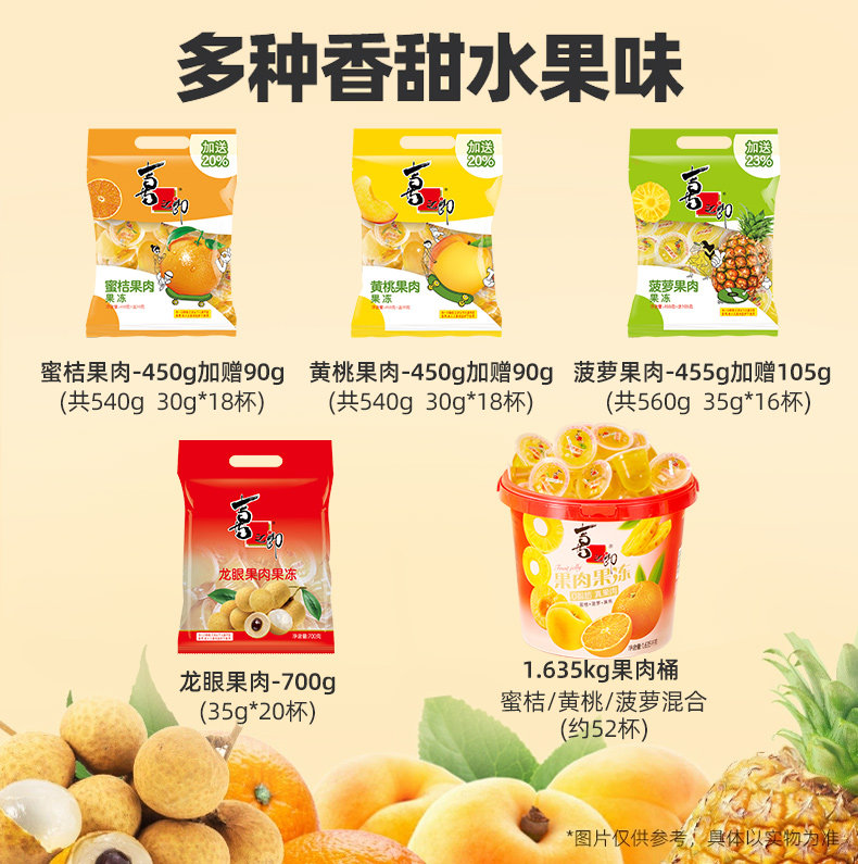 喜之郎果肉果冻袋装蜜桔橘子黄桃菠萝水果儿童休闲解馋零食小吃