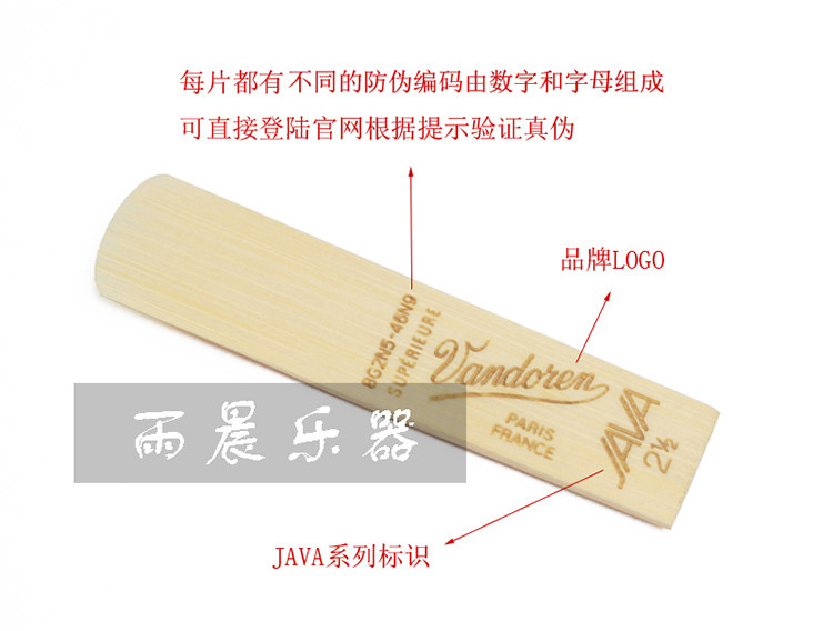 法国 Vandoren 弯德林 Java 绿盒 降e 中音 萨克斯 哨片 2.5/3
