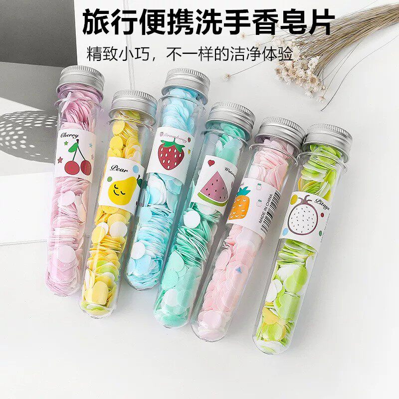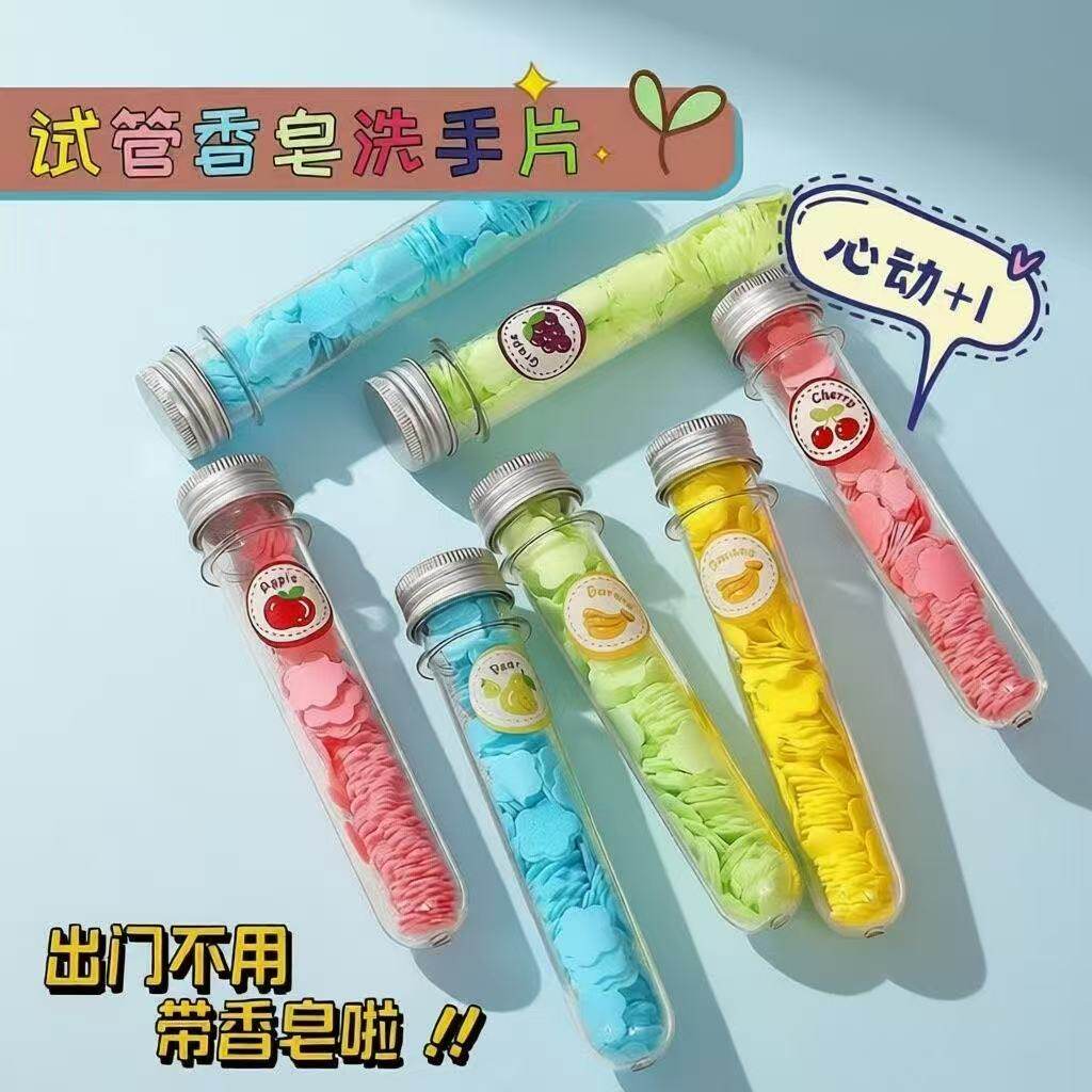 可爱卡通试管香皂花学生户外便携洗手片旅行一次性瓶装花型肥皂片